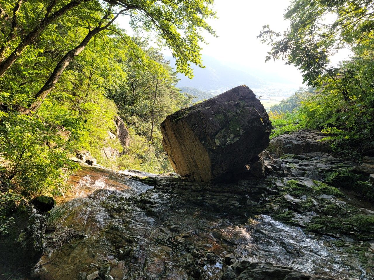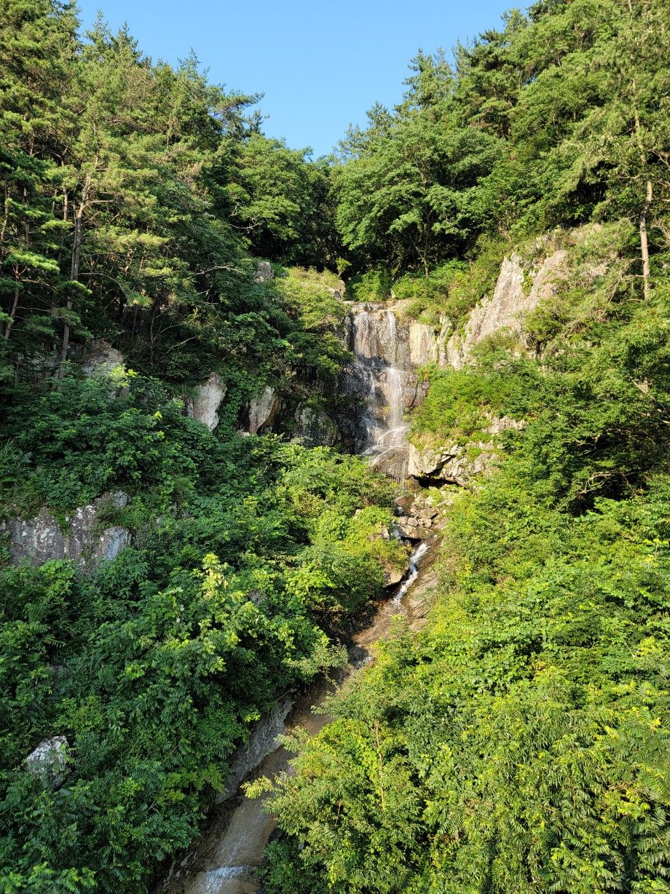 폭포 상단 위 계곡에서 연결된 호수로 받아지는 물이 시원해 보였습니다.