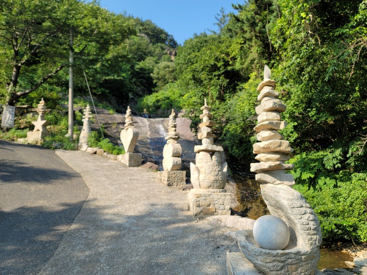 길 옆으로 폭포가 보이고