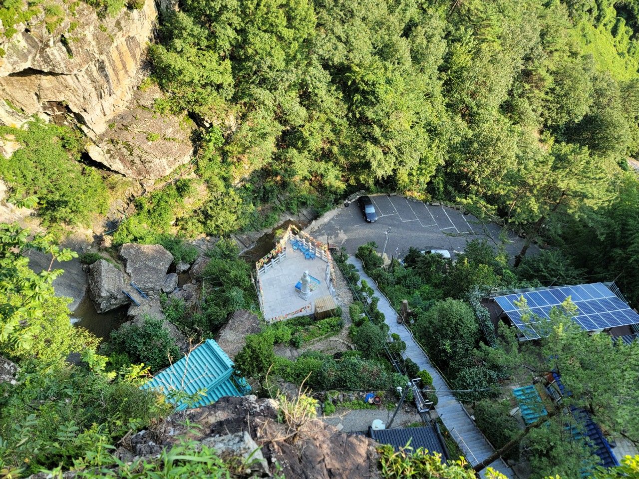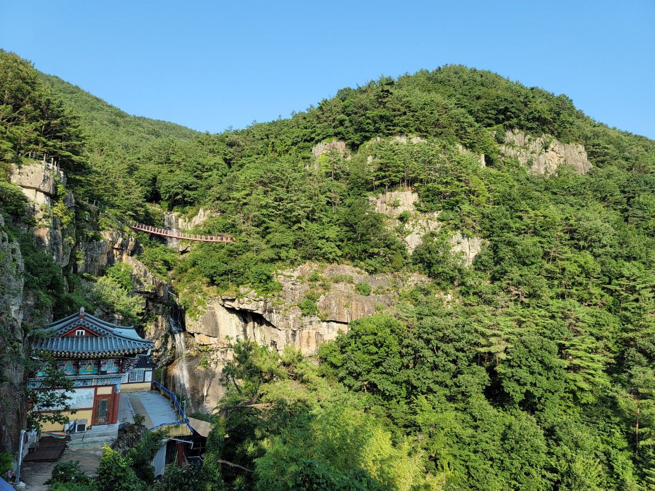 폭포암 전경도 천천히 한 번 살펴보고 여행을 마무리했습니다. 통영이나 거제, 고성 근처 가볼 만한 곳으로 시원한 폭포와 스릴만점 출렁다리가 있는 구절산 폭포암 추천합니다.