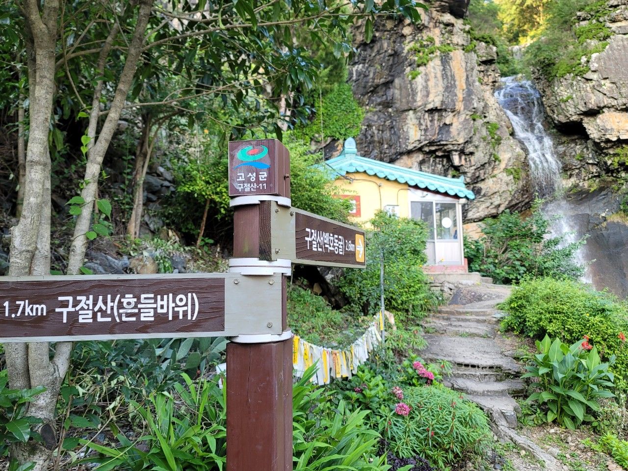 비 온 뒤 운치 넘치는 경남 고성의 구절산 폭포암에 다녀왔는데요. 가볍게 폭포의 절경 보며 출렁다리도 건너고 폭포암도 다녀올 수 있어서 좋은 여행이었습니다.
