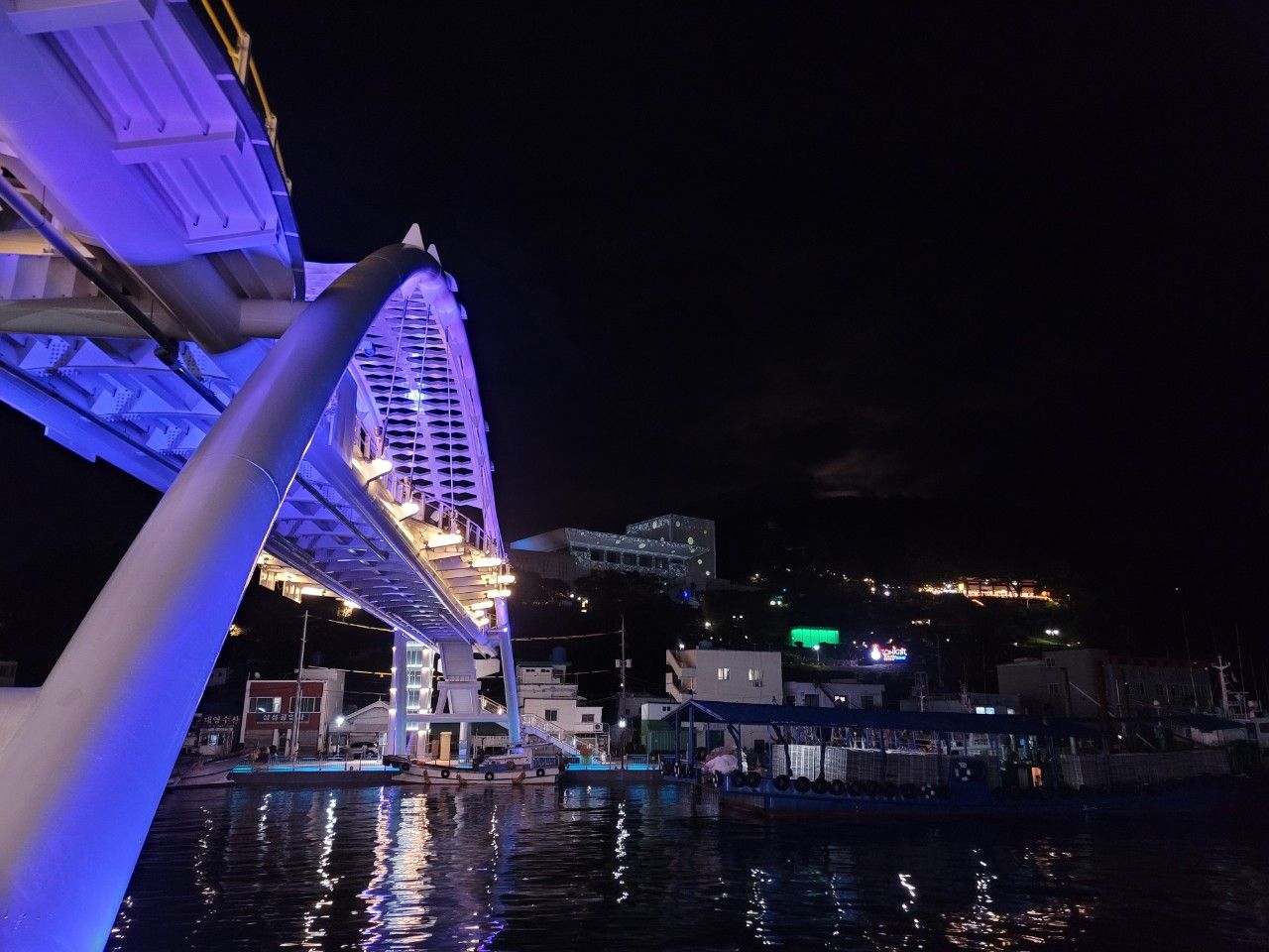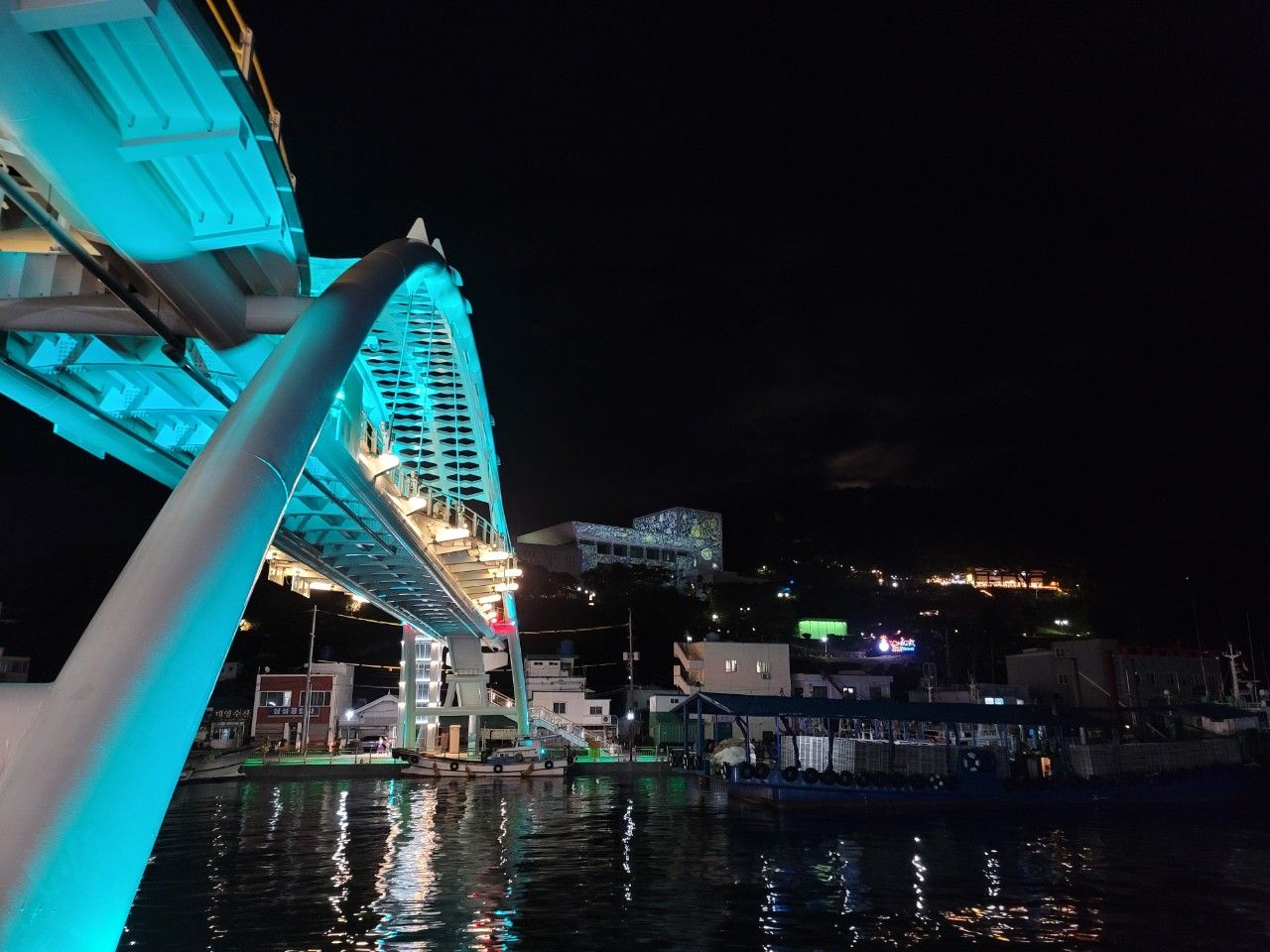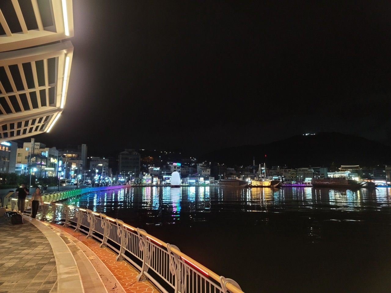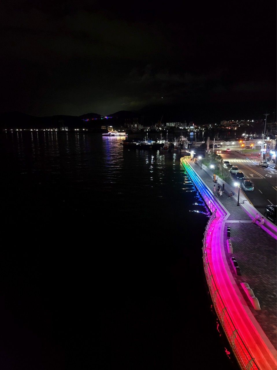 보도교 조명이 무지개빛깔이라 보기 좋았고 통영 필수 야경 방문 코스인지 많은 사람들이 있었네요.