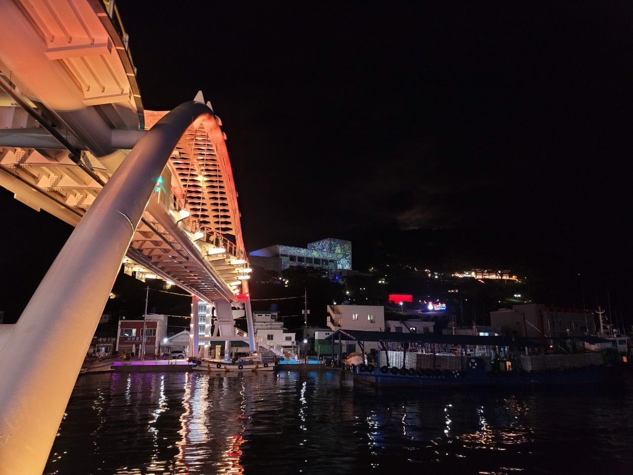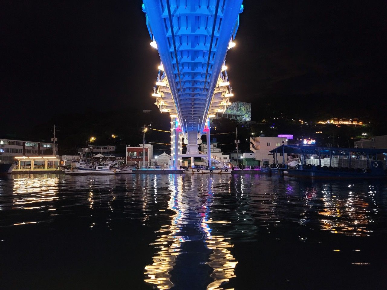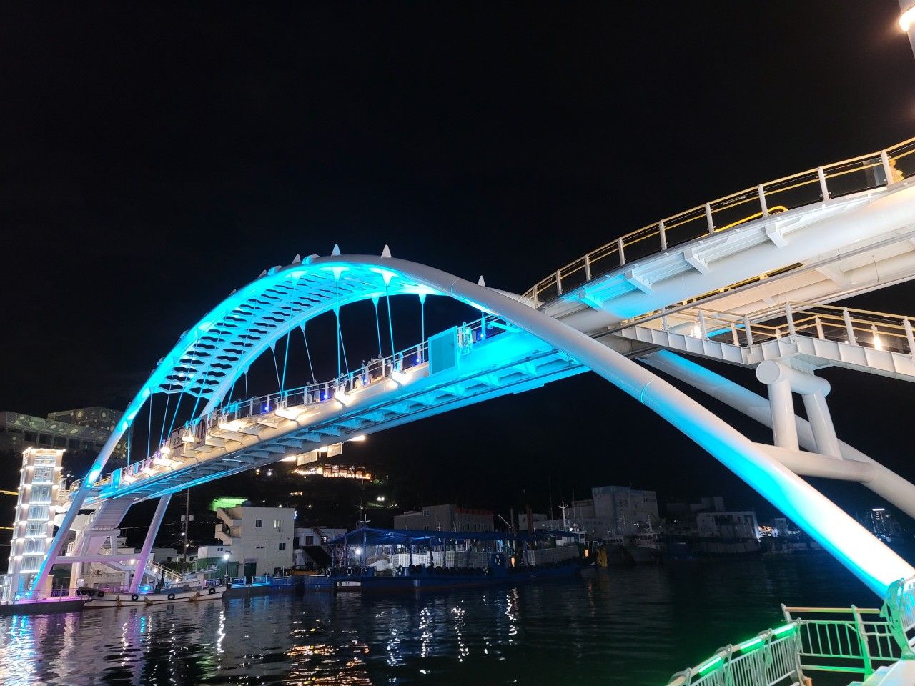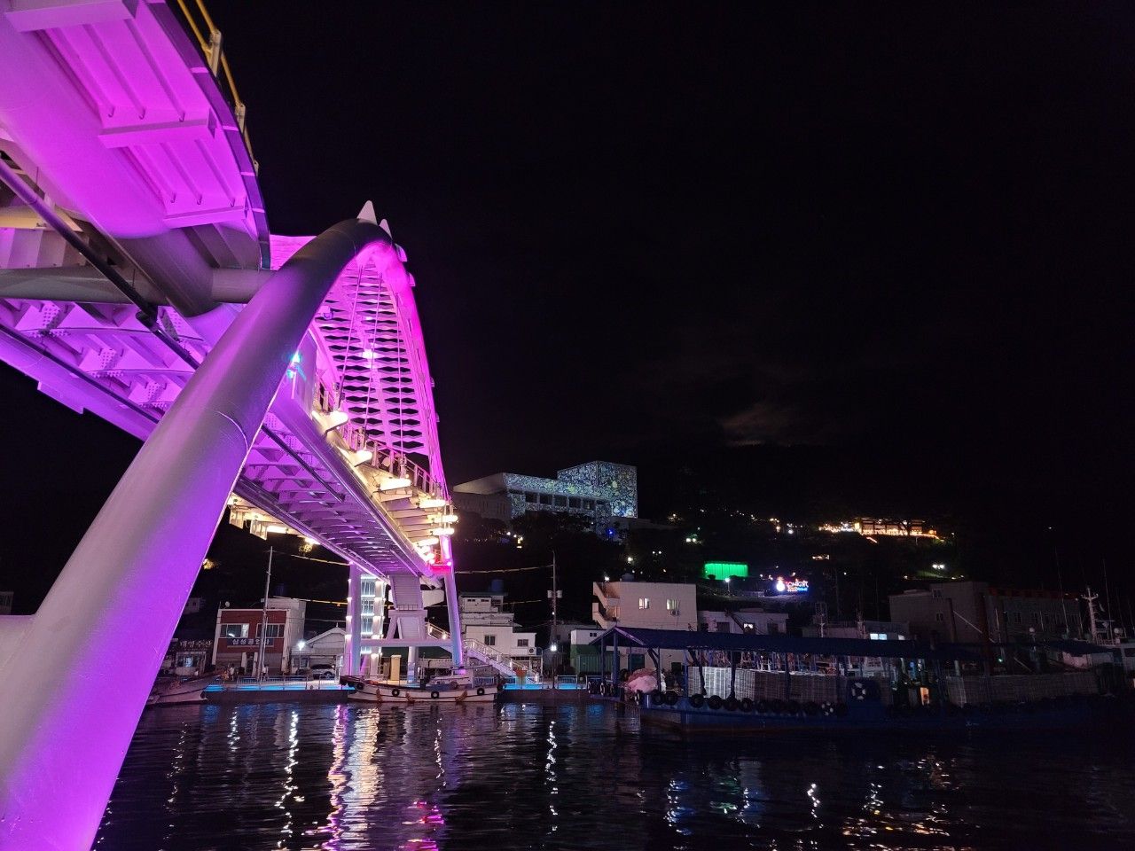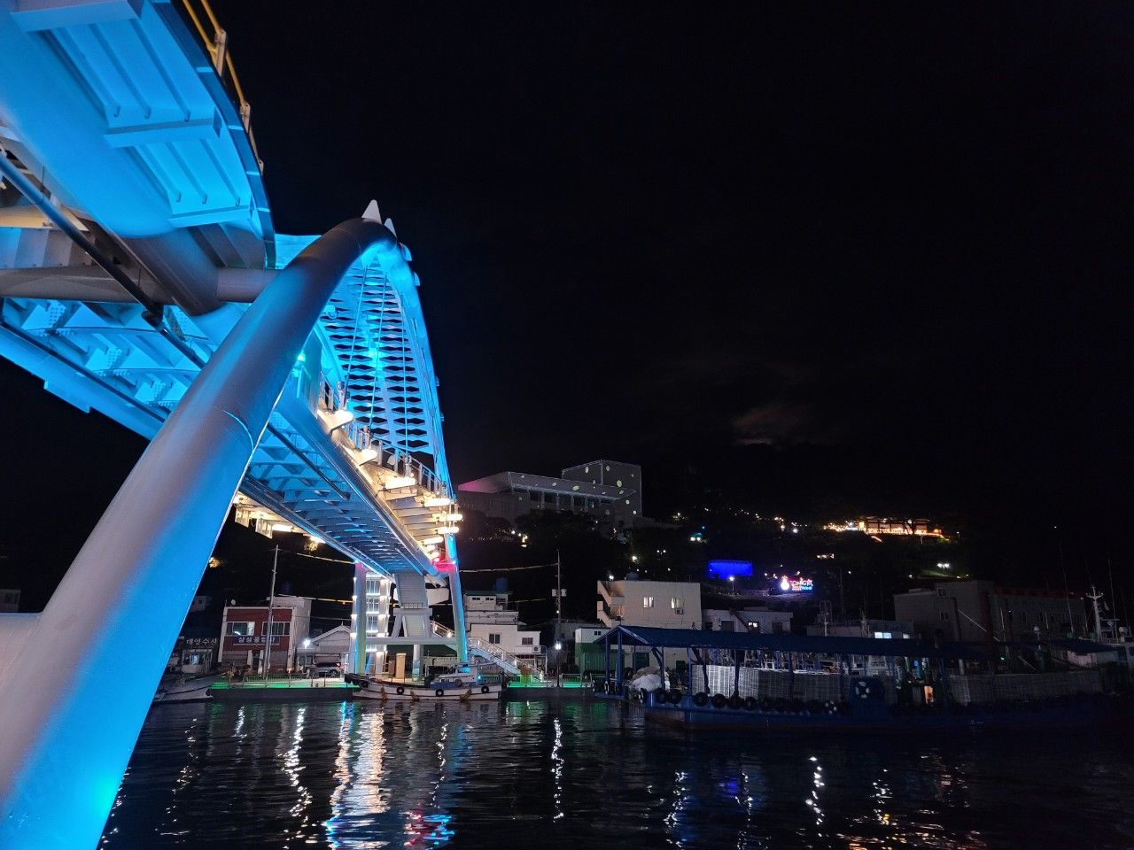 보도교 조명이 무지개빛깔이라 보기 좋았고 통영 필수 야경 방문 코스인지 많은 사람들이 있었네요.