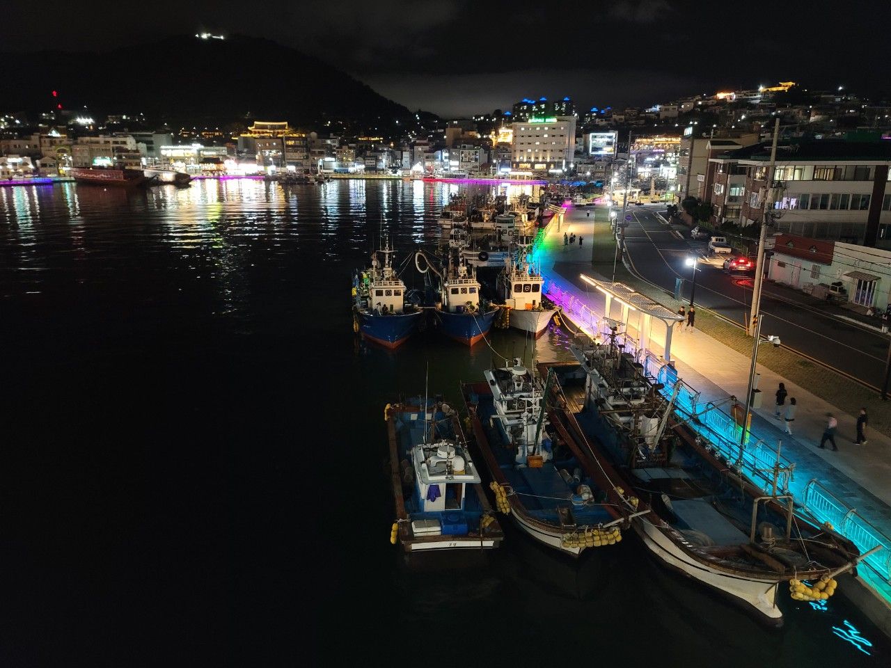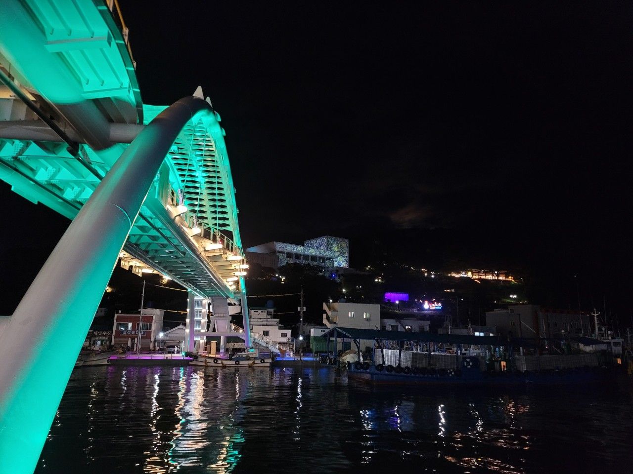 보도교 조명이 무지개빛깔이라 보기 좋았고 통영 필수 야경 방문 코스인지 많은 사람들이 있었네요.
