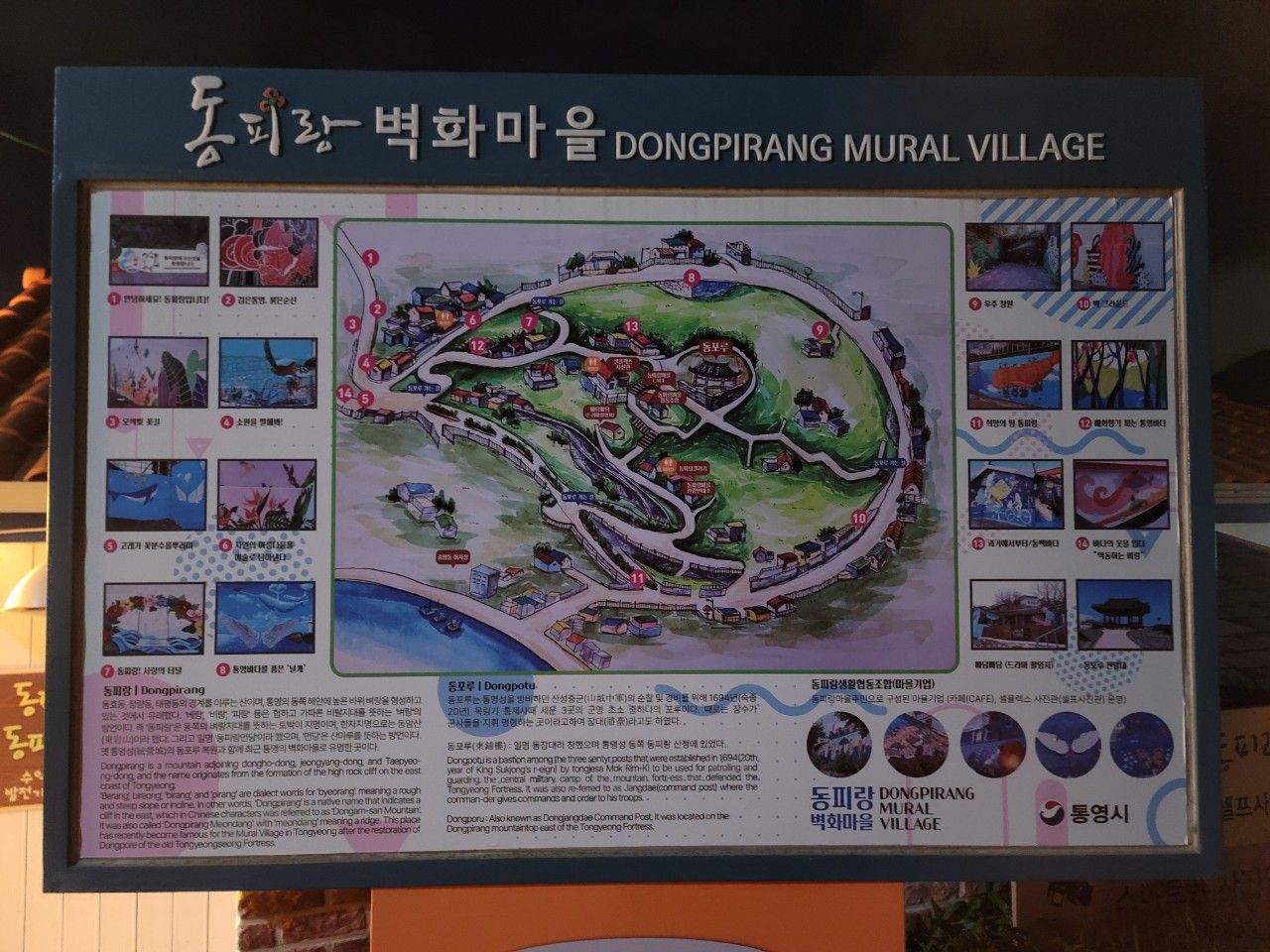 🔎 동피랑은 동쪽과 비랑이 합쳐진 말로 비랑은 통영 사투리로 비탈이라는 뜻이라고 합니다. 2007년 10월 전국에서 동피랑에 벽화를 그릴 사람들이 모여 시작된 동피랑 벽화마을은 동화나라 같은 풍경을 선물해 주는 곳이 되었습니다. 동피랑 꼭대기 동포루에서 내려다 보이는 강구안과 바다 풍경도 절경을 이루는 곳이기도 합니다.