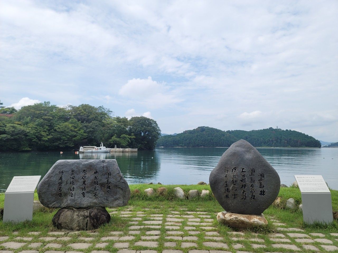 시원한 바람맞으며 배 여기저기 구경도 하다 보니 금방 한산도에 도착했네요.