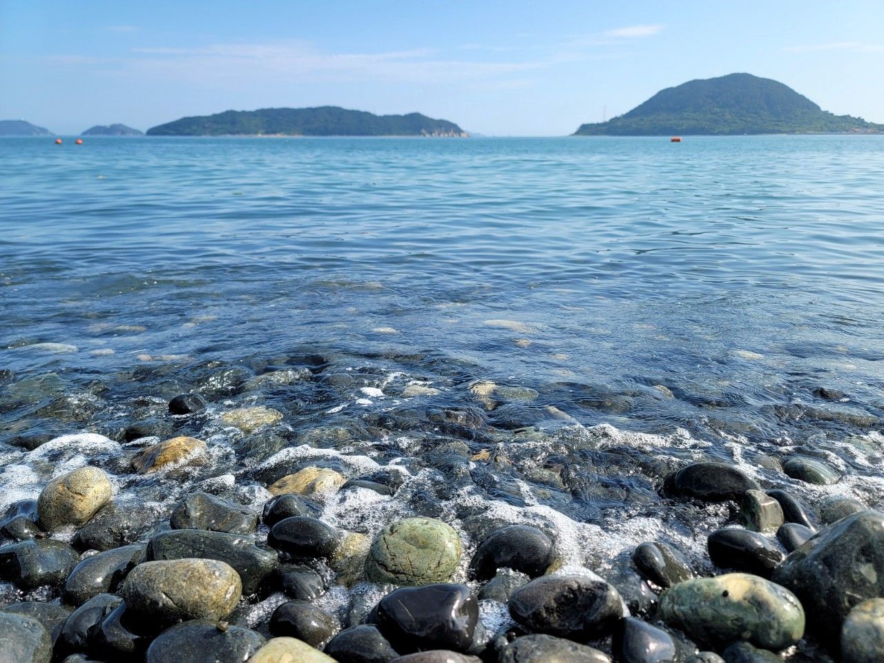 마을회관 앞에 주차 후 걸어서 몽돌해수욕장(봉암해수욕장)으로 이동, 맑은 날에 하늘까지 시원하니 마음까지 시원해지는 뷰를 선물해 주네요.