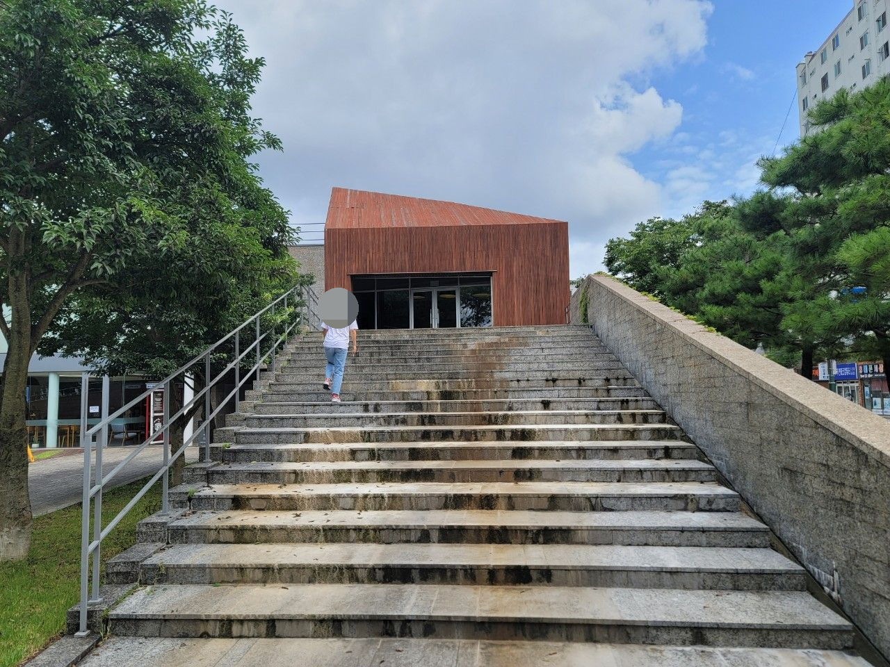 모던한 건물과 큼직한 나무들이 잘 어우러져 있었답니다.