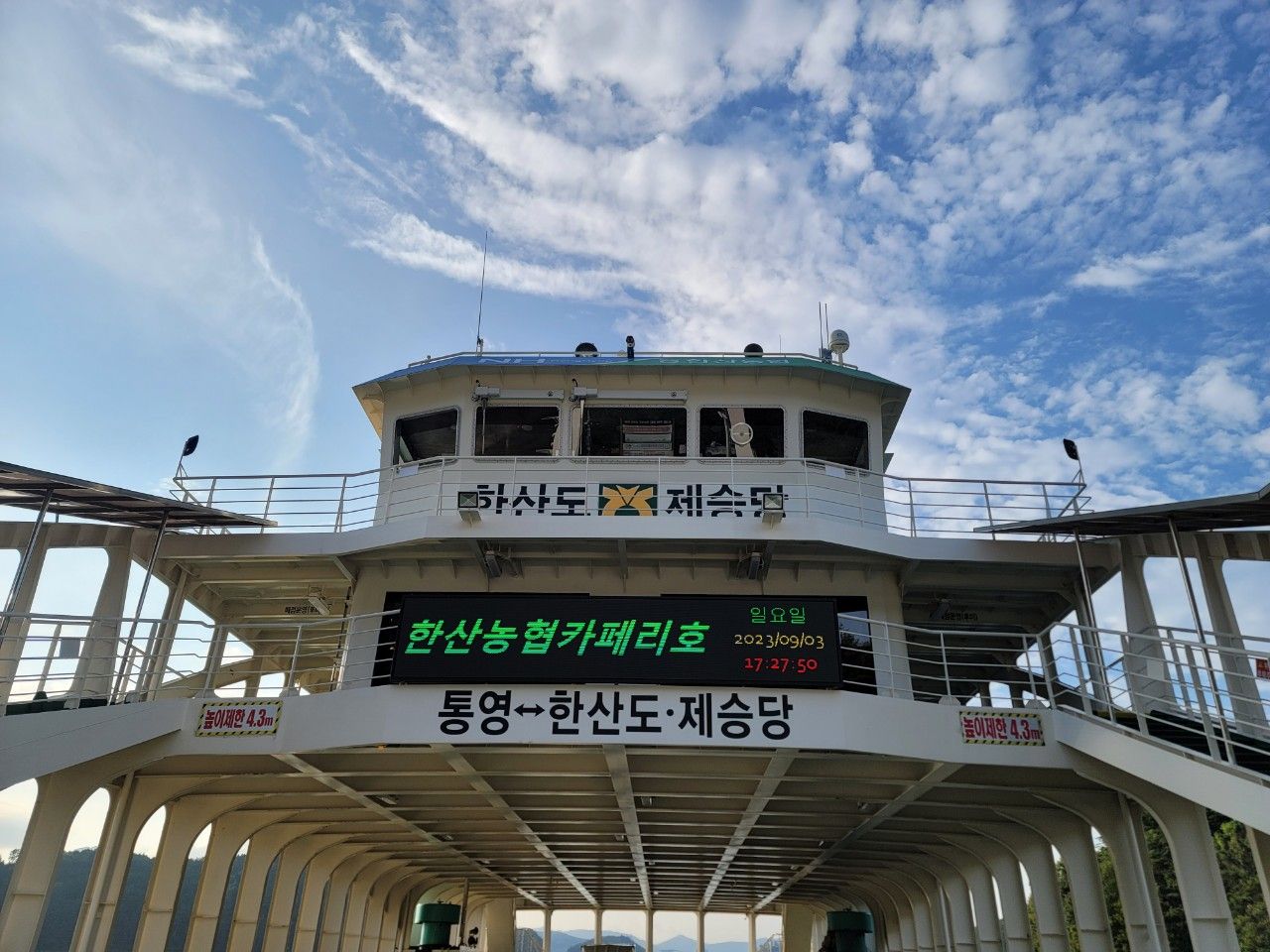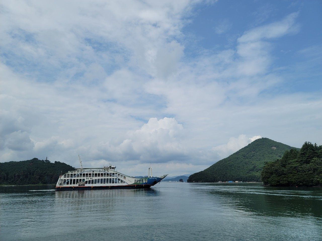 시원한 바람맞으며 배 여기저기 구경도 하다 보니 금방 한산도에 도착했네요.