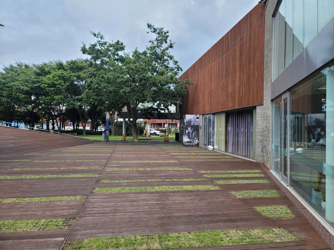 모던한 건물과 큼직한 나무들이 잘 어우러져 있었답니다.