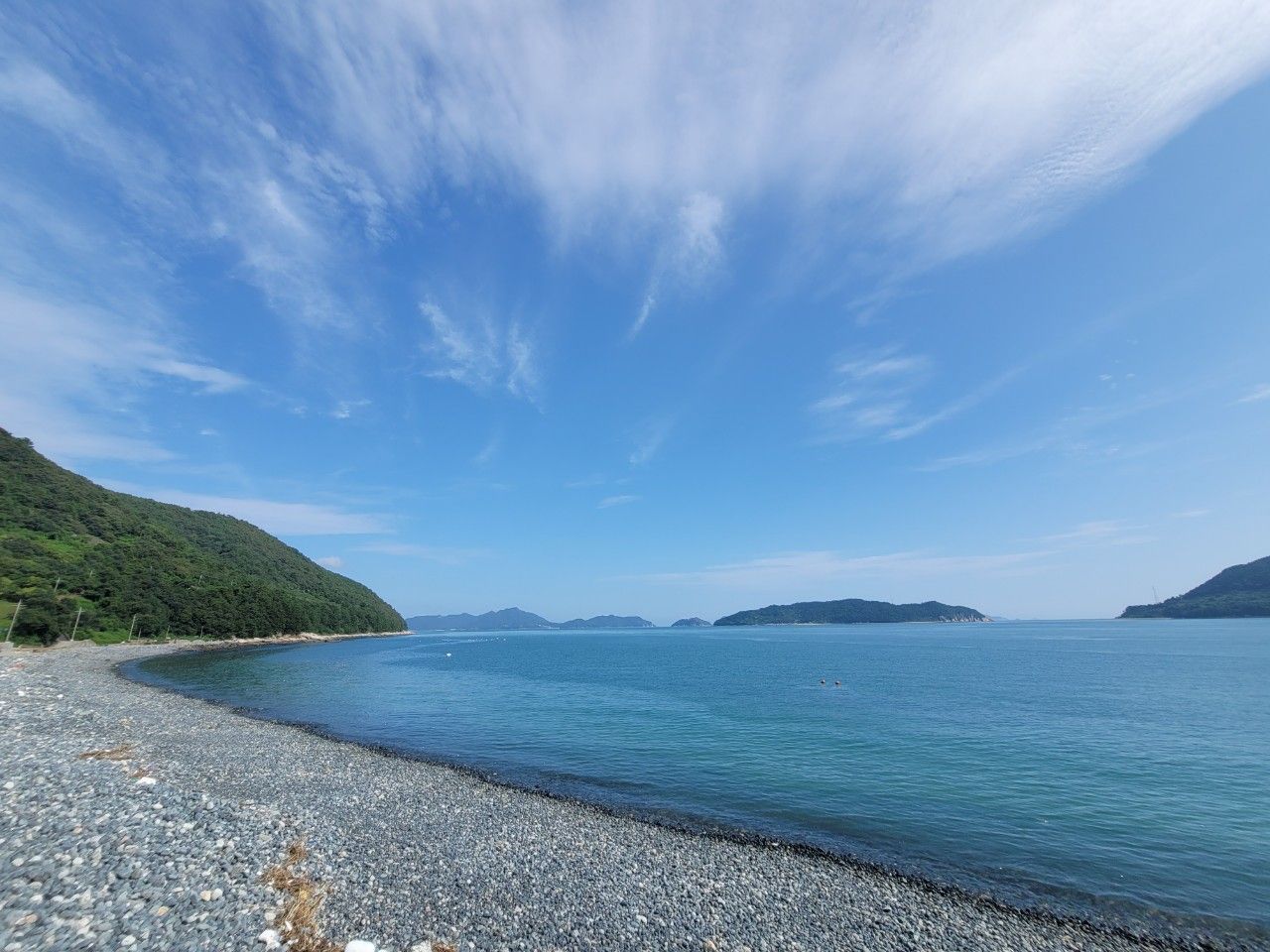 마을회관 앞에 주차 후 걸어서 몽돌해수욕장(봉암해수욕장)으로 이동, 맑은 날에 하늘까지 시원하니 마음까지 시원해지는 뷰를 선물해 주네요.