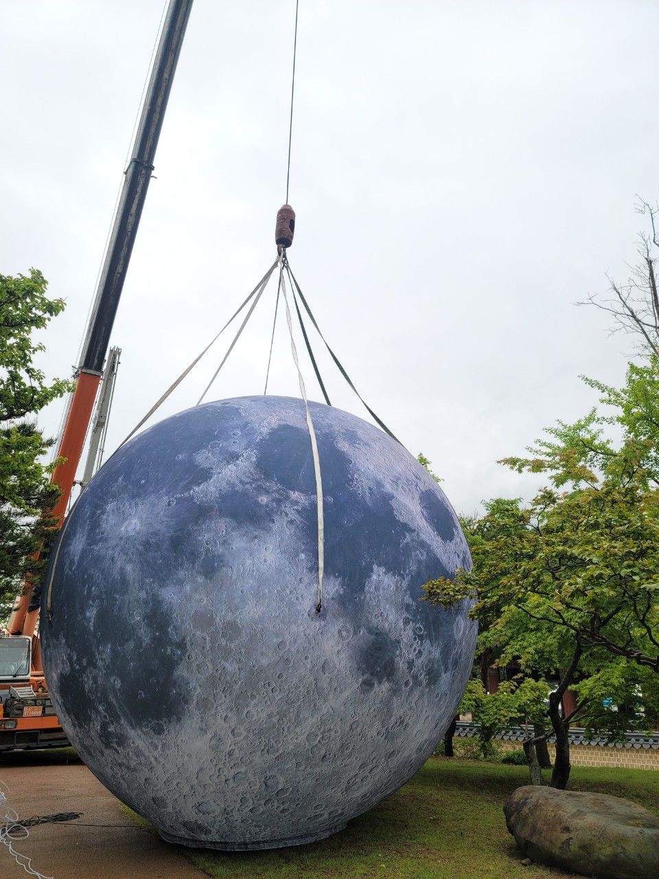 멀리서 보고 크레인에 커다란 돌이 달려있는 줄 알았는데 가까이 가보니 달이었습니다. 달을 띄우신다고^^ 이순신장군 님하면 또 달이죠~~ 한산섬 달 밝은 밤~~~