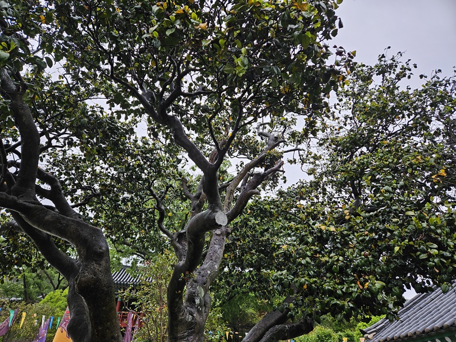 입구를 들어서자마자 보이는 커다란 동백나무는 시도기념물 제74호로 지정된 충렬사 동백나무입니다.