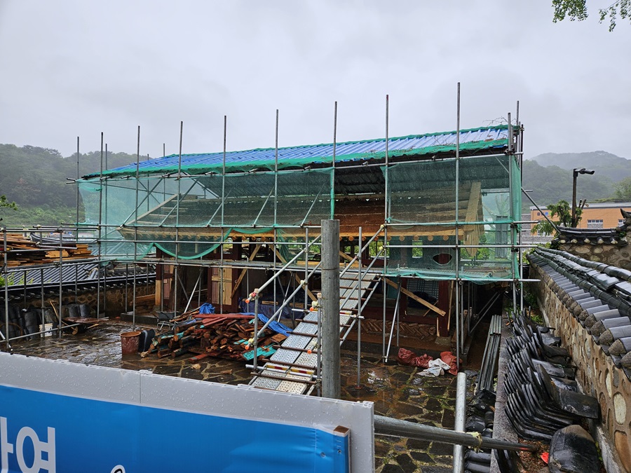통영 충렬사 서재 및 마당 보수공사도 한 편에 진행중이었는데요. 마무리가 되려면 시간이 조금 걸려 보였습니다. 소중한 문화재이니 공사가 잘 마무리되었음 했습니다.