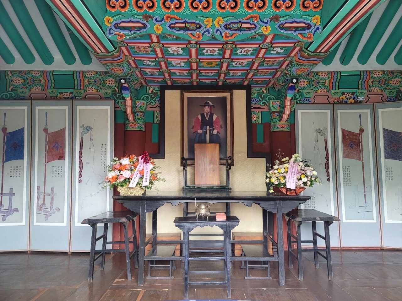 1606년 충무공 이순신의 신위를 모시고 제사를 지내기 위해 건립된 정당(사당)입니다. 내부에 위패와 함께 이순신의 영정이 모셔져 있습니다. 존경심과 경외로운 무언가가 느껴지는 공간이기도 했습니다.