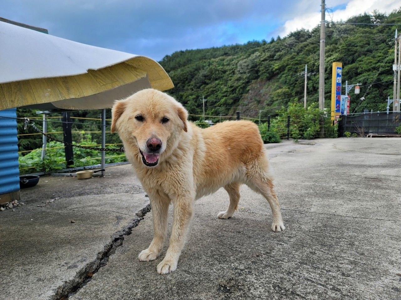 풍금이에요. 대형견이지만 순하디 순한 순둥이 풍금이랍니다. 날이 더워서 조금 힘들어하는데 옆에 가니 너무나 귀엽게 다가와 주어 잠시 놀았답니다. 학섬휴게소 가시는 분들 풍금이에게 인사 건네주시기 바랍니다.^^