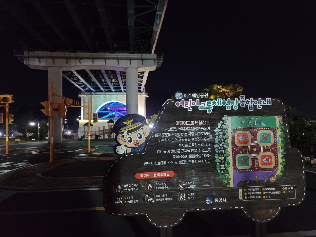미수해안로 따라 걸으면서 화려한 통영대교의 야경을 담아보았습니다