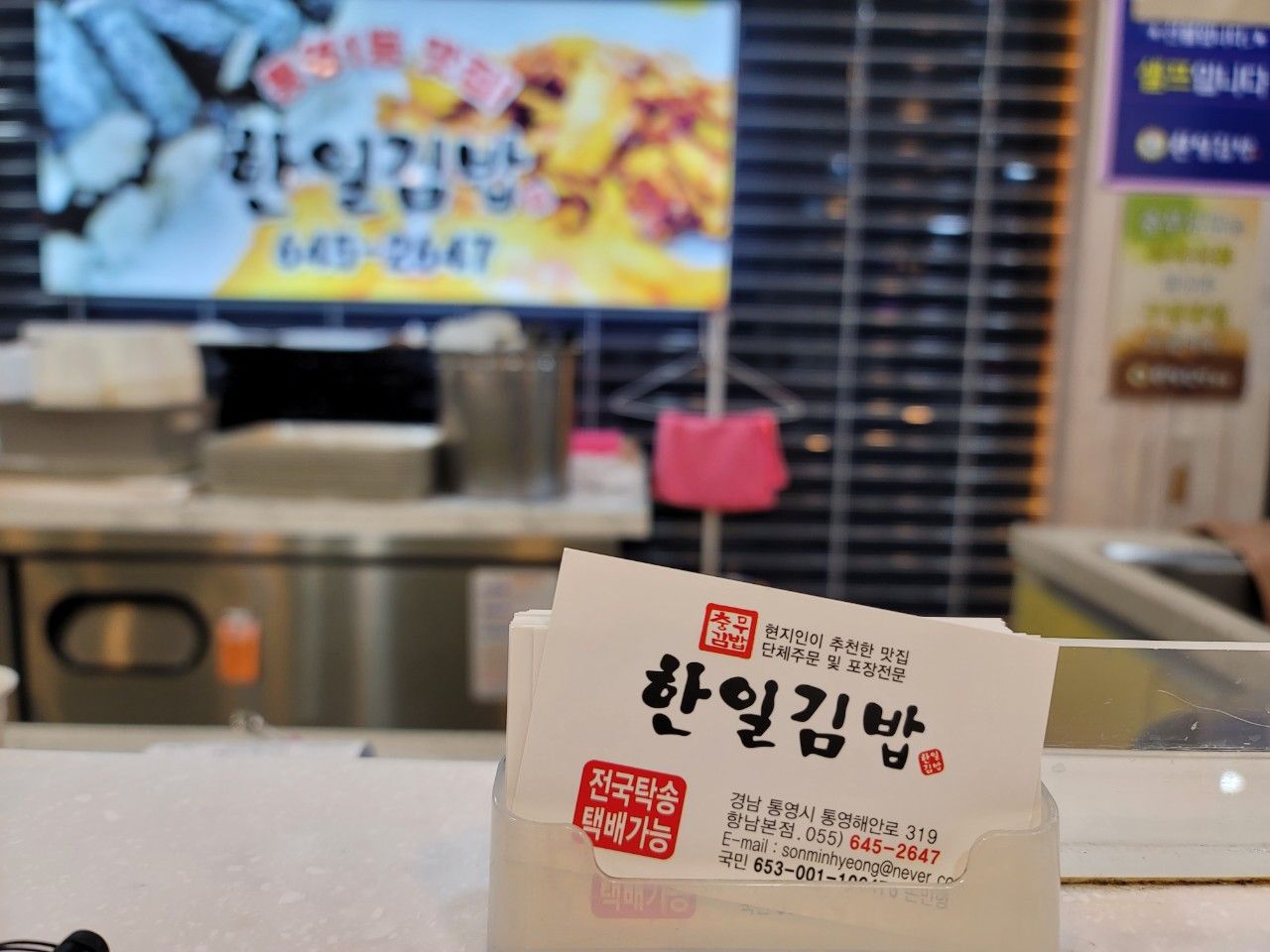 한일김밥 외부 모습인데요. 통영 1등 맛집이라고 합니다. 어렸을 때도 가던 맛집이기도 합니다.