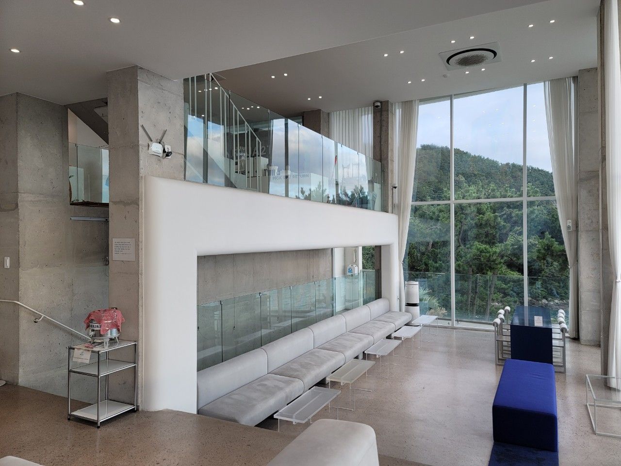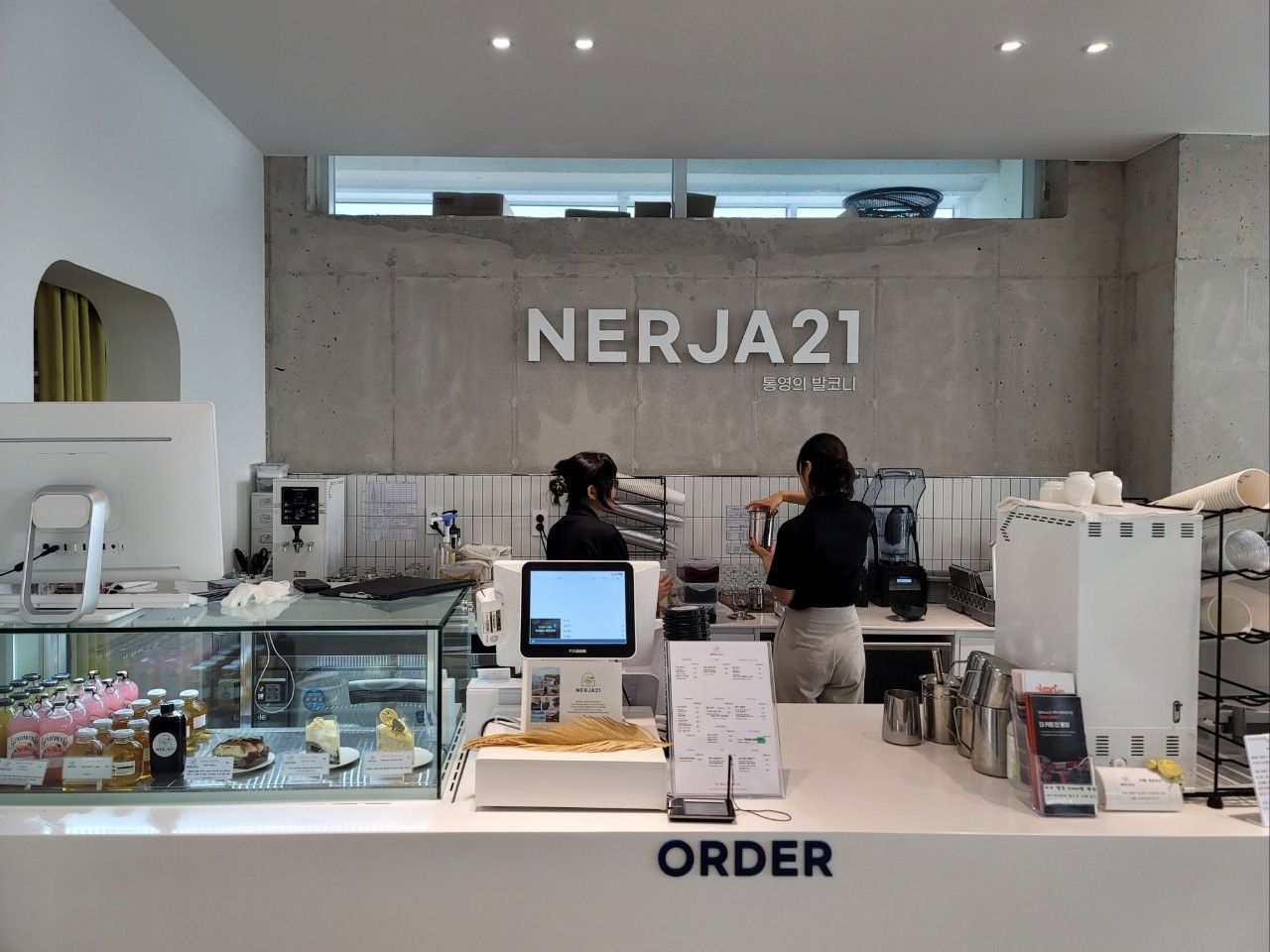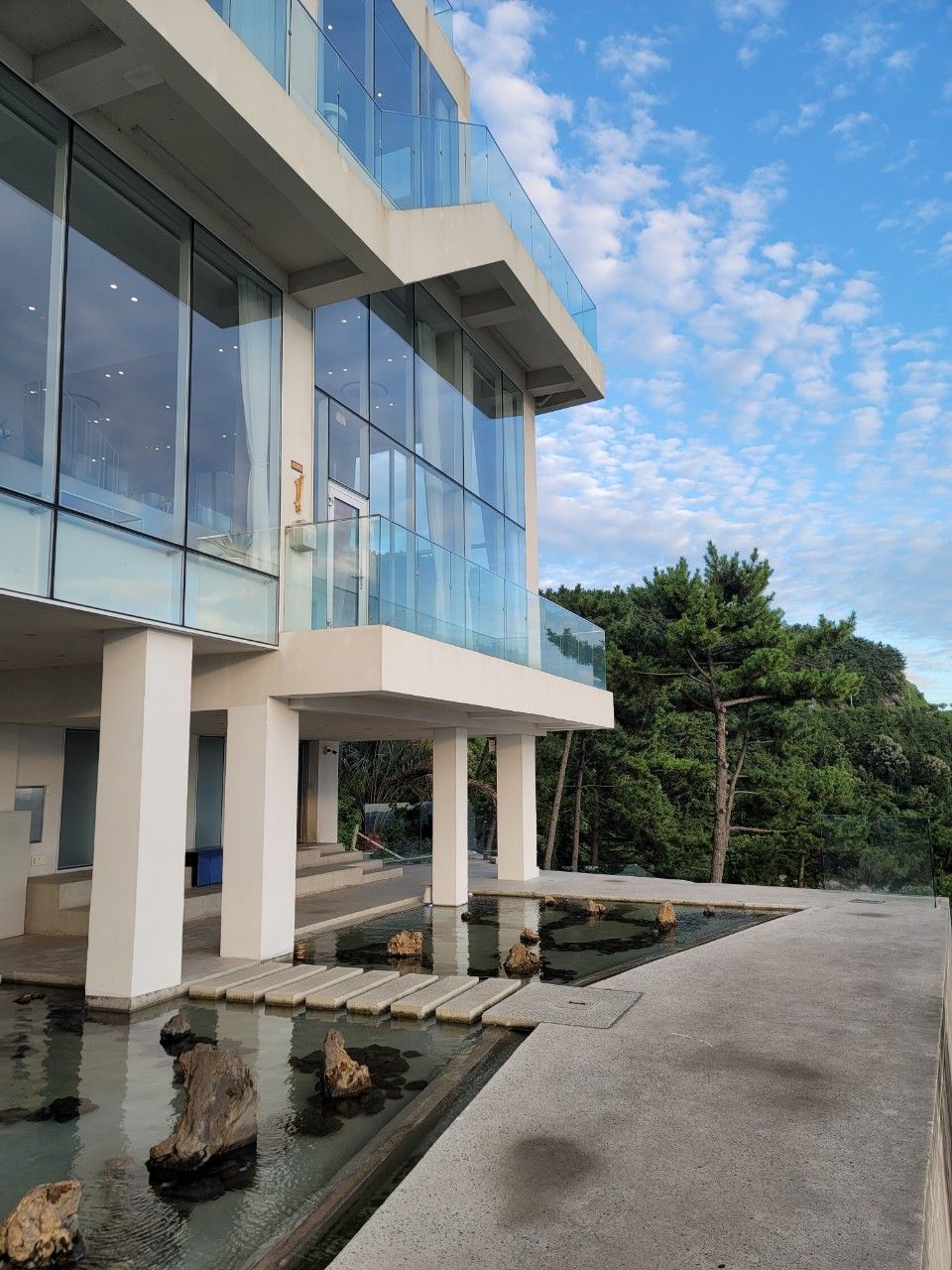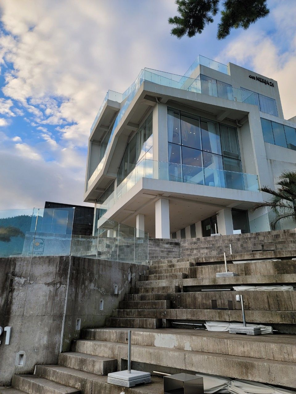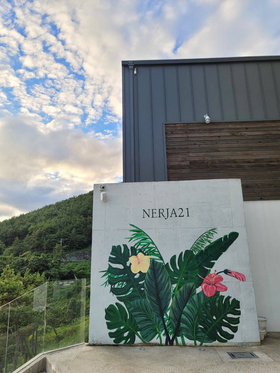 태풍 카눈이 지나고 하늘이 파랗게 열려서 산책 겸 다니다 뷰가 멋진 오션뷰 카페 네르하21에 방문했습니다. 카페 내부도 이뻤지만 바깥으로 보이는 바다와 조화가 아주 멋진 곳이었습니다.