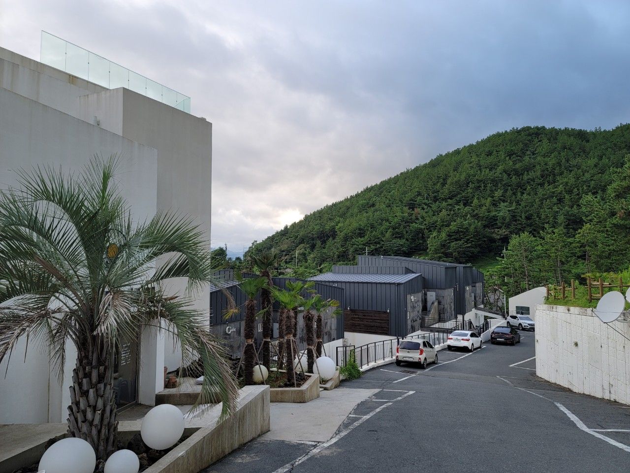 펜션과 함께 사용하는 듯한 조금 협소한 느낌의 주차장에 주차하고,
