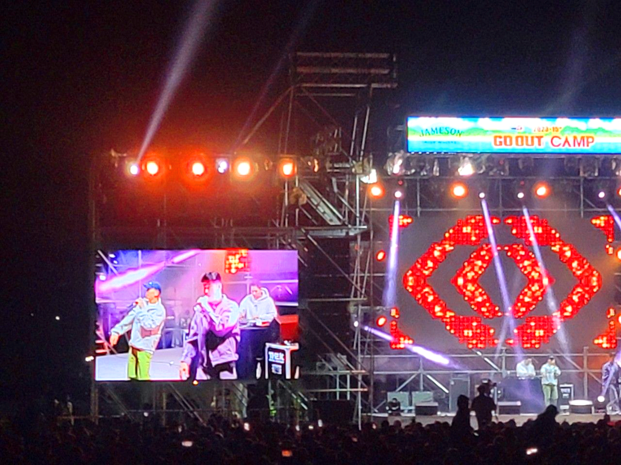 다이나믹 듀오 공연이 시작되었습니다. 늦은 시간인데도 캠프 참가자들이 한자리에 모여 떼창으로 즐기는 모습이었습니다.