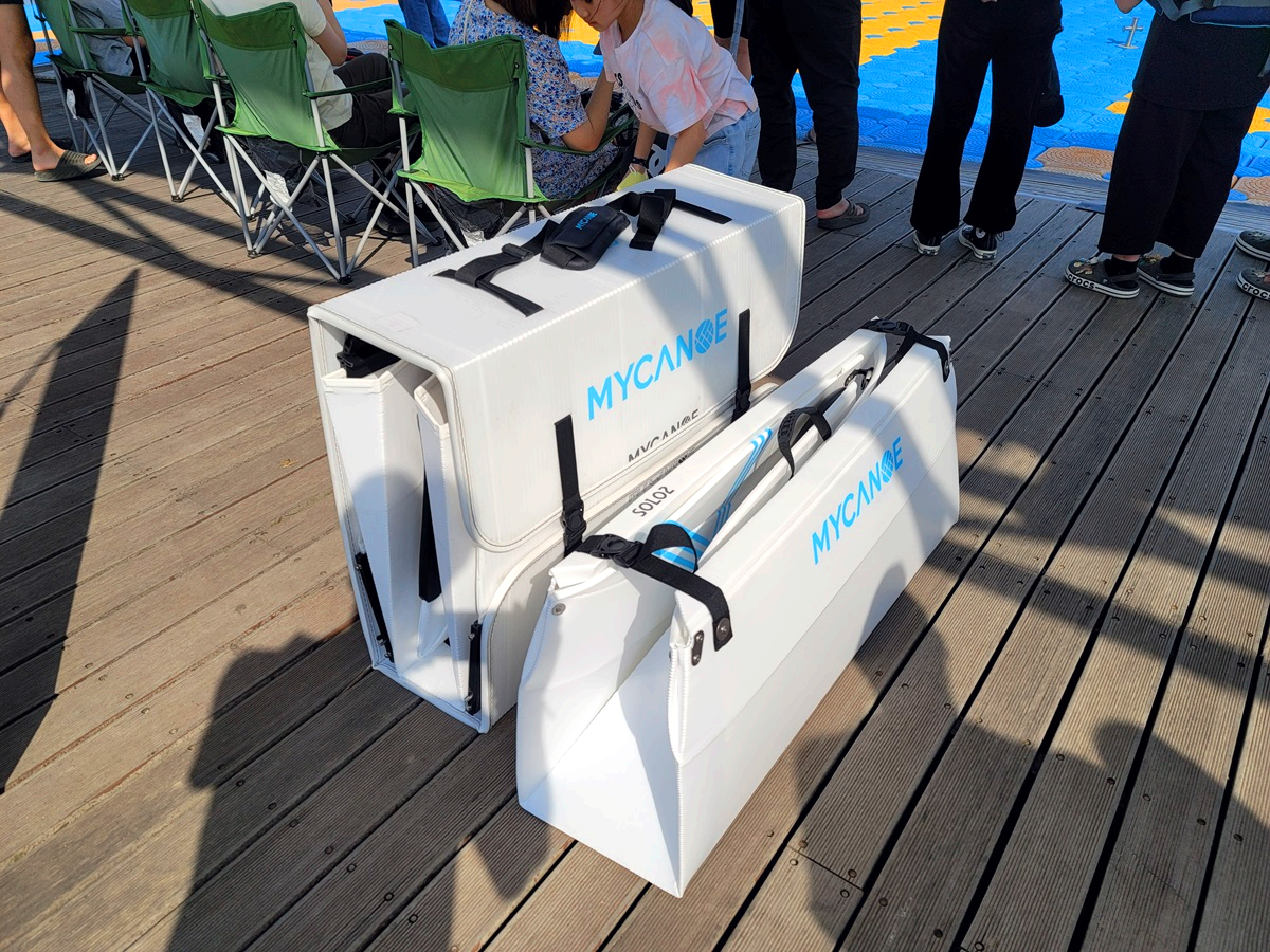 접이식 카누도 무료로 체험할 수 있었습니다. 신기하게도 접으니 여행가방 같은데 펼치니 두 사람도 거뜬히 태워줍니다.