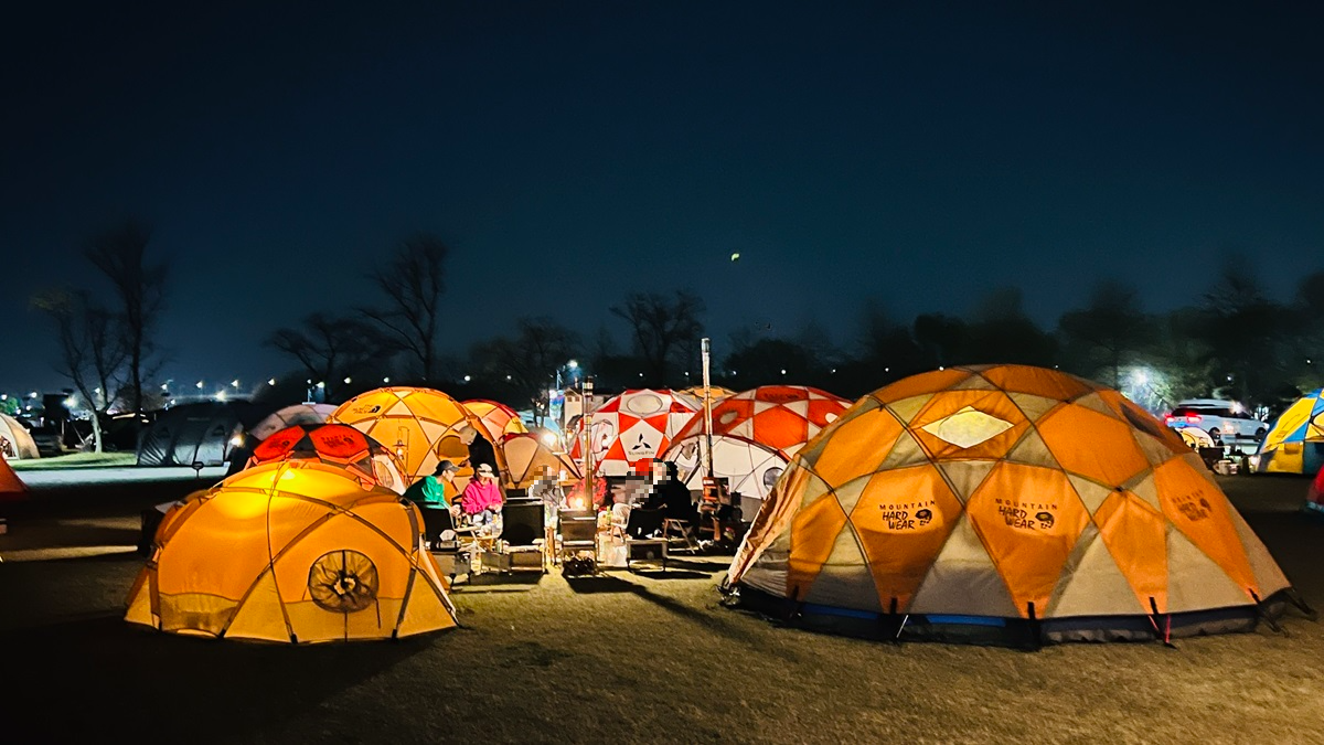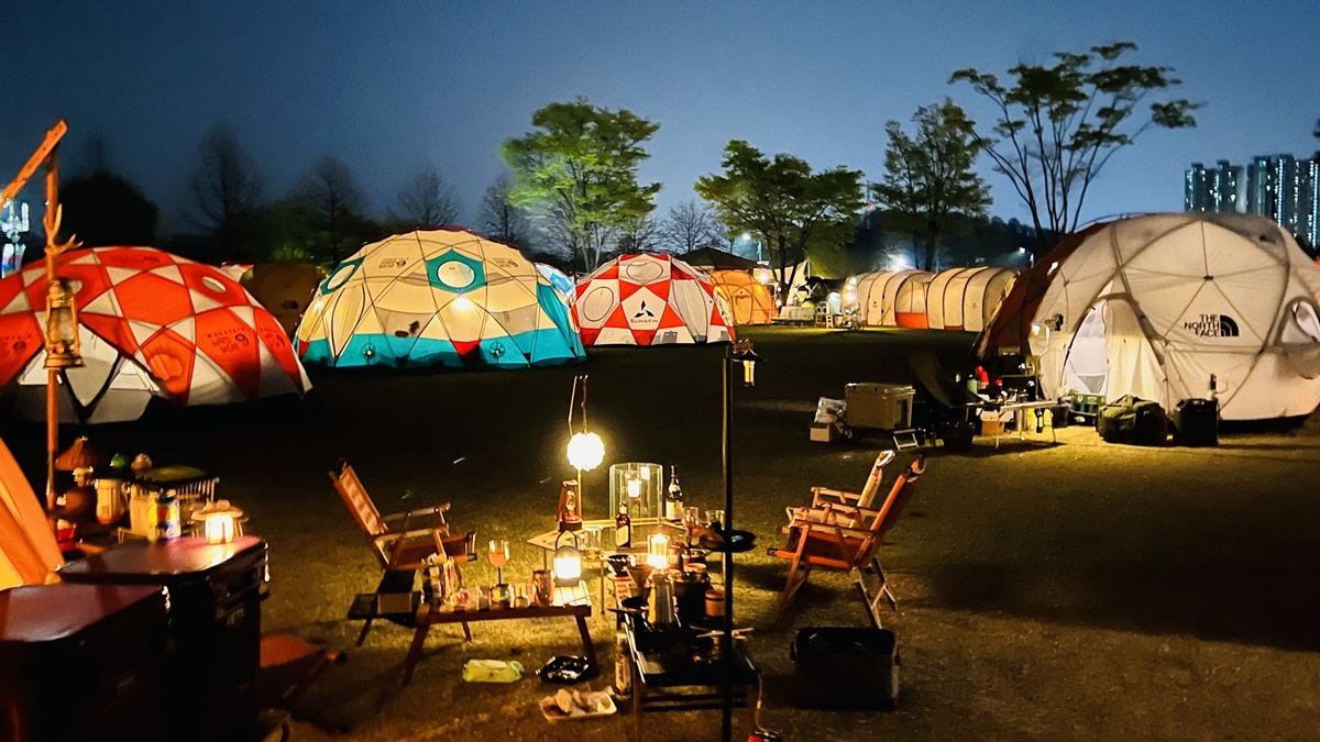 돔 텐트 구역이 따로 마련되어 저녁이 되니 알록달록 장관을 이루었습니다.