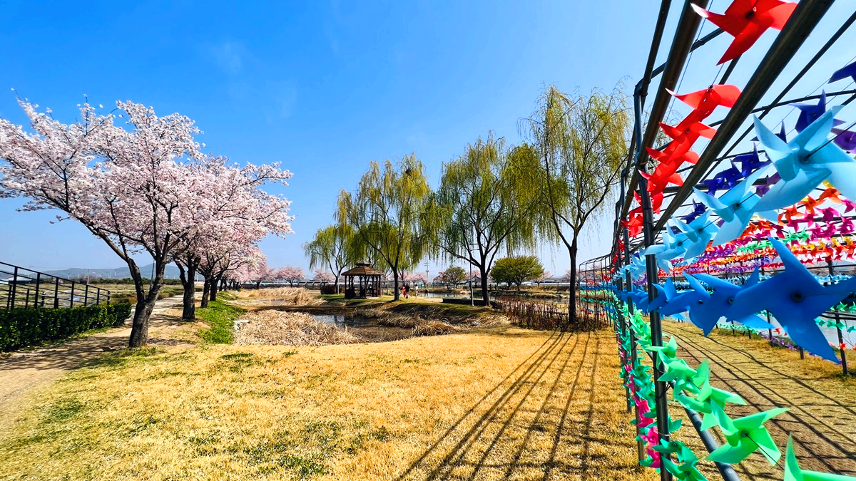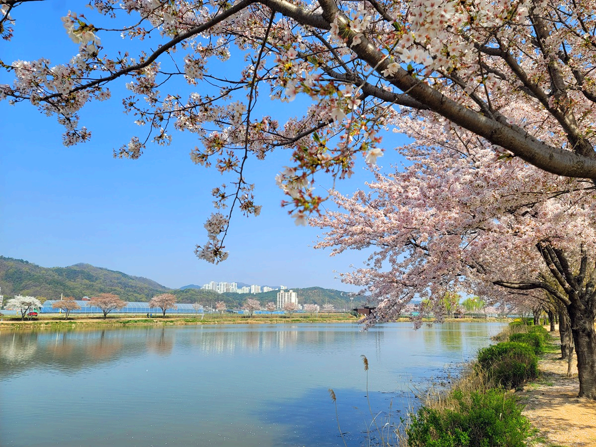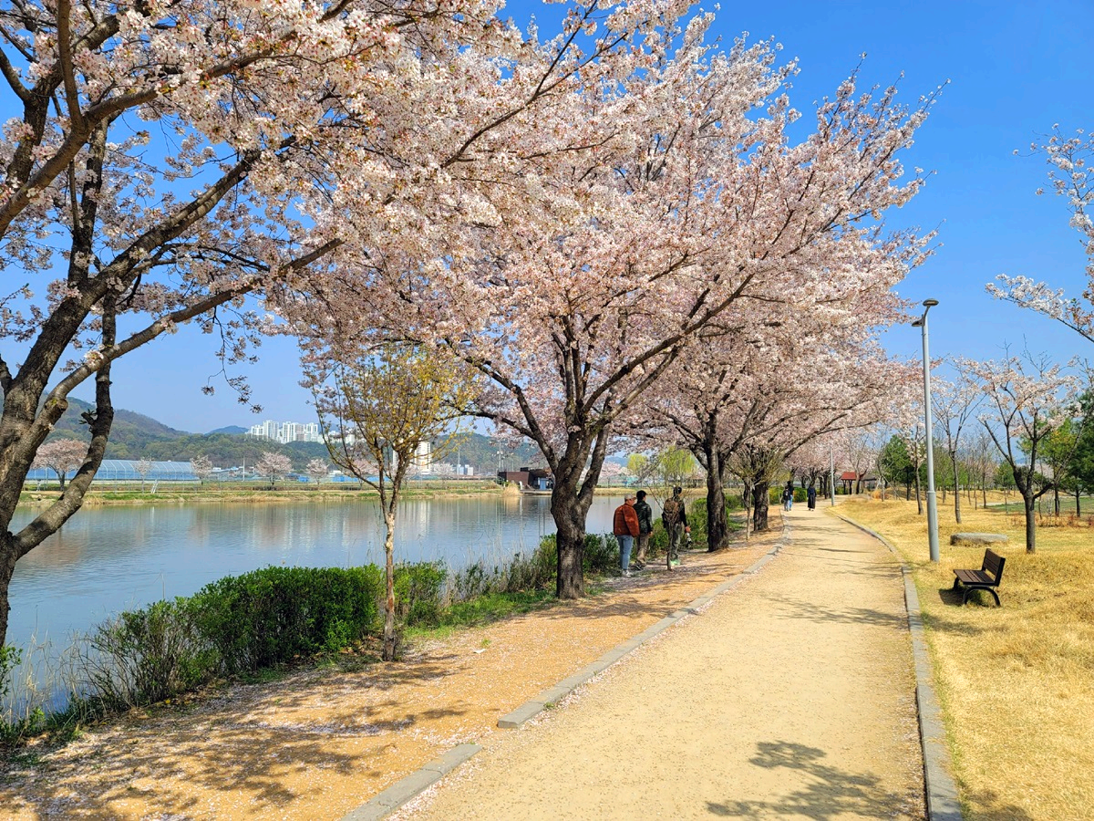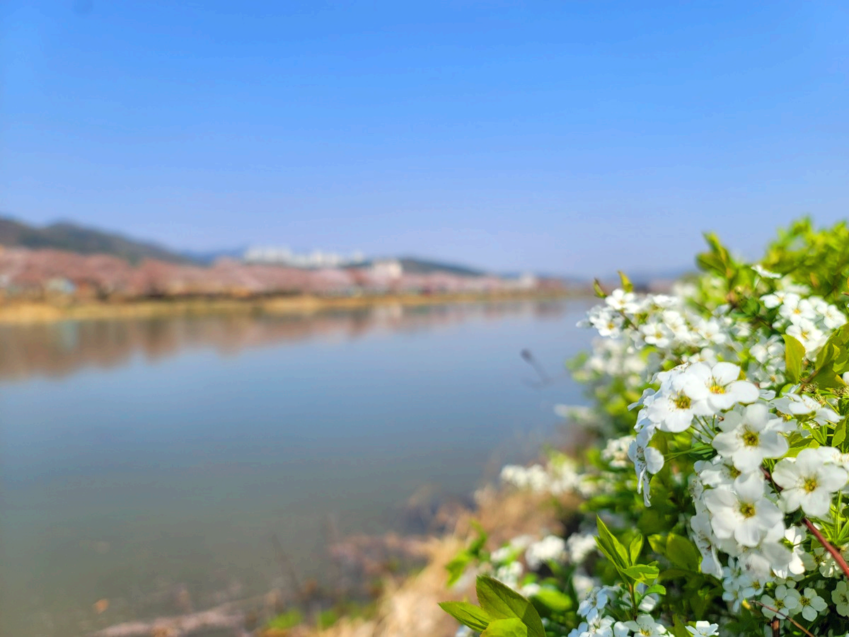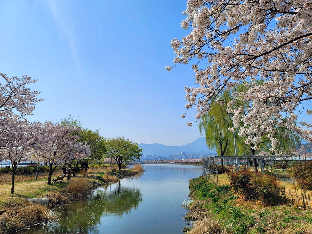 온 세상이 벚꽃으로 뒤덮인 것 같습니다. 구미에도 벚꽃들이 만개를 해서 이제는 꽃비가 내리고 있답니다. 구미 낙동강 체육공원 근처 지산샛강 생태공원에 있는 벚나무길을 따라가 보았습니다.