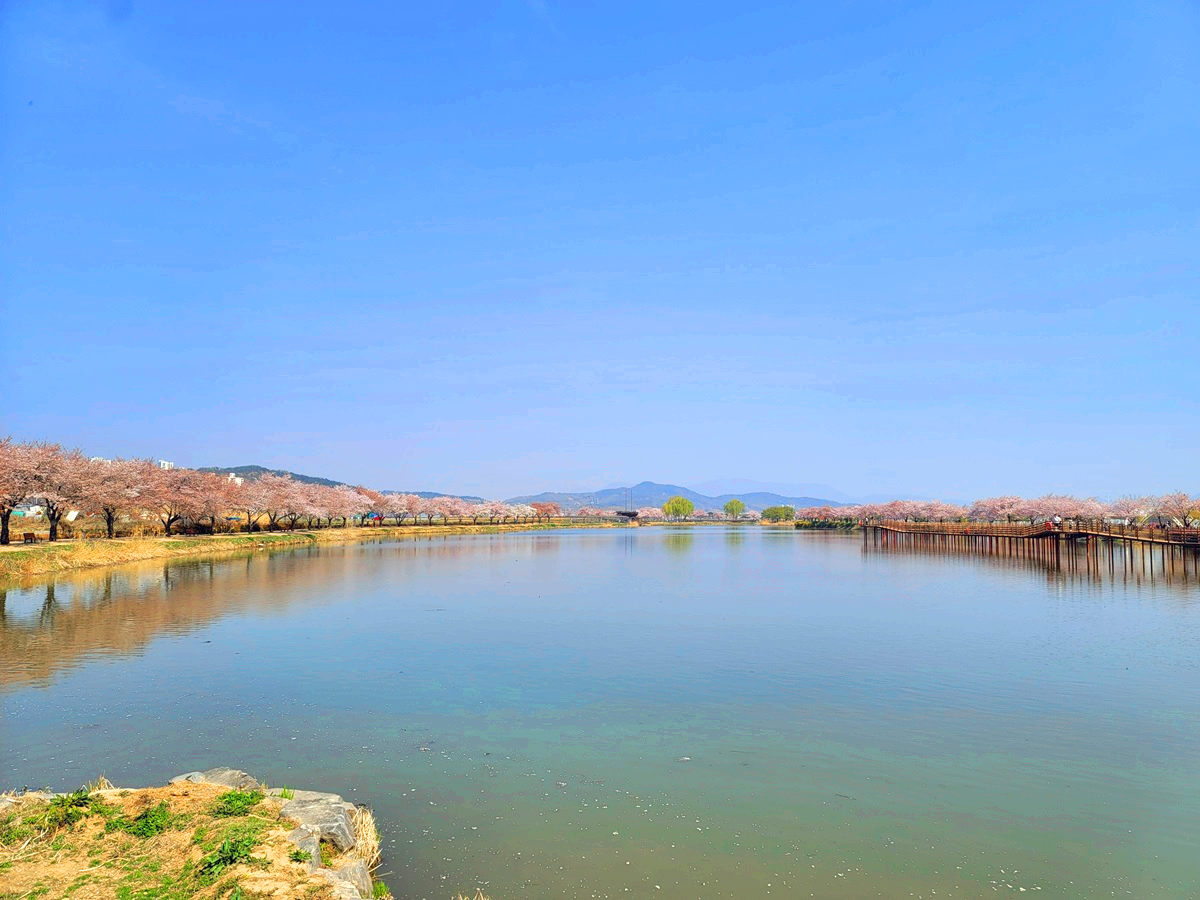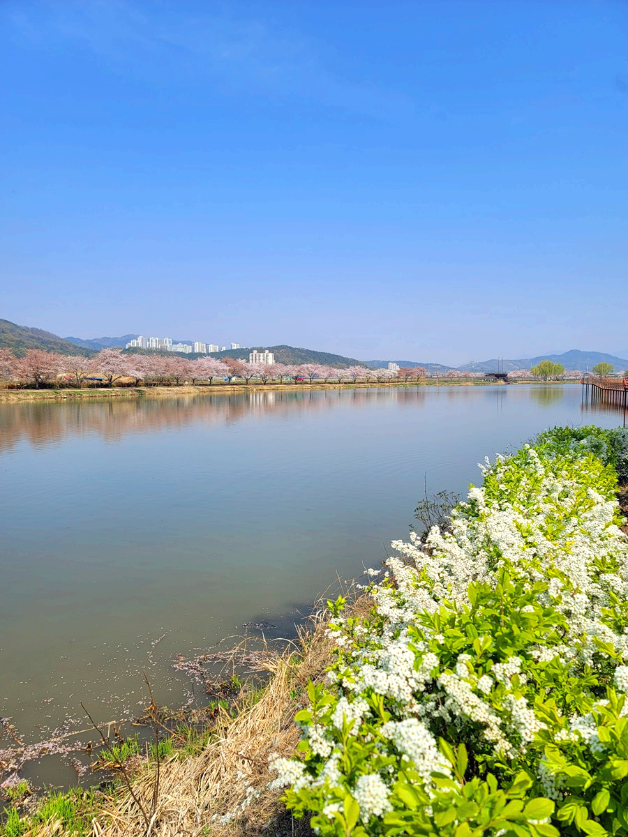온 세상이 벚꽃으로 뒤덮인 것 같습니다. 구미에도 벚꽃들이 만개를 해서 이제는 꽃비가 내리고 있답니다. 구미 낙동강 체육공원 근처 지산샛강 생태공원에 있는 벚나무길을 따라가 보았습니다.