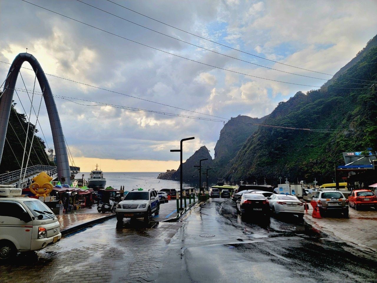도동항에는 독도 배편이 없어졌다는 비보와 함께 갑자기 소나기가 내려서 아침부터 먹었습니다.