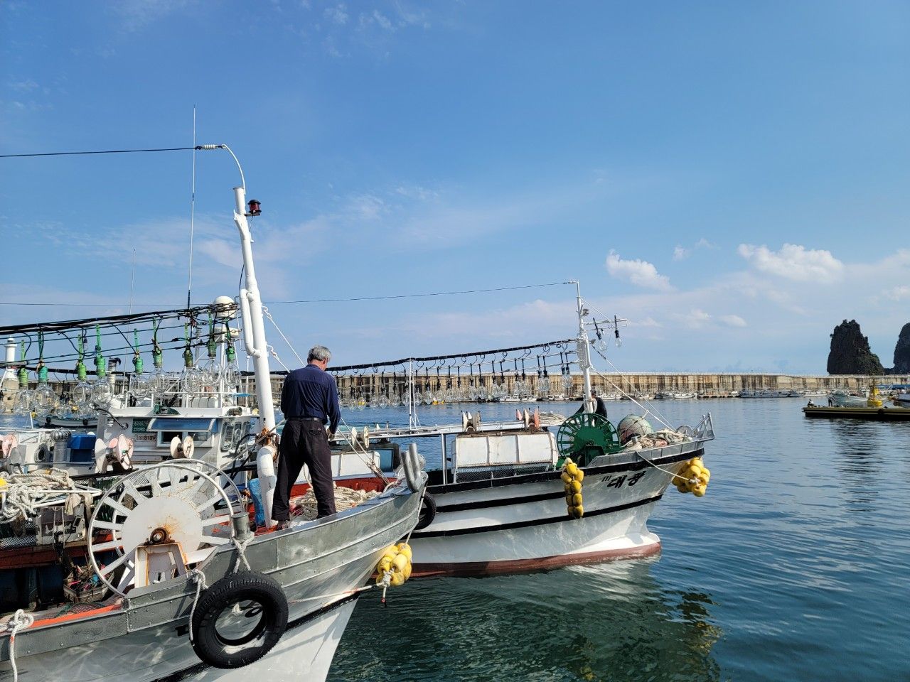 독도로 가기 위해 다시 저동항으로 오니 오징어 배들도 출항 준비를 하고 있네요.