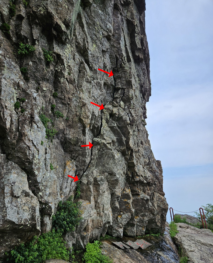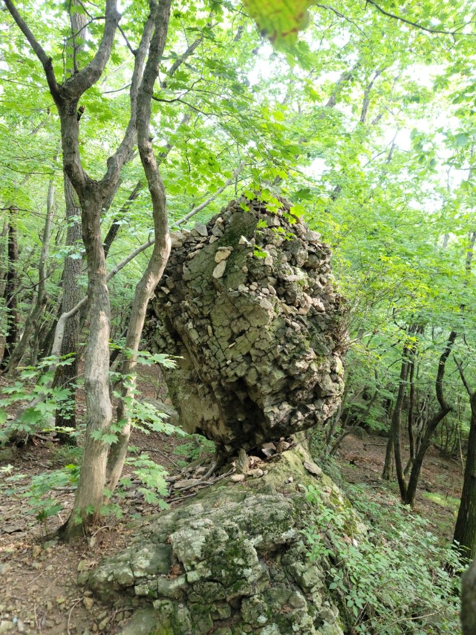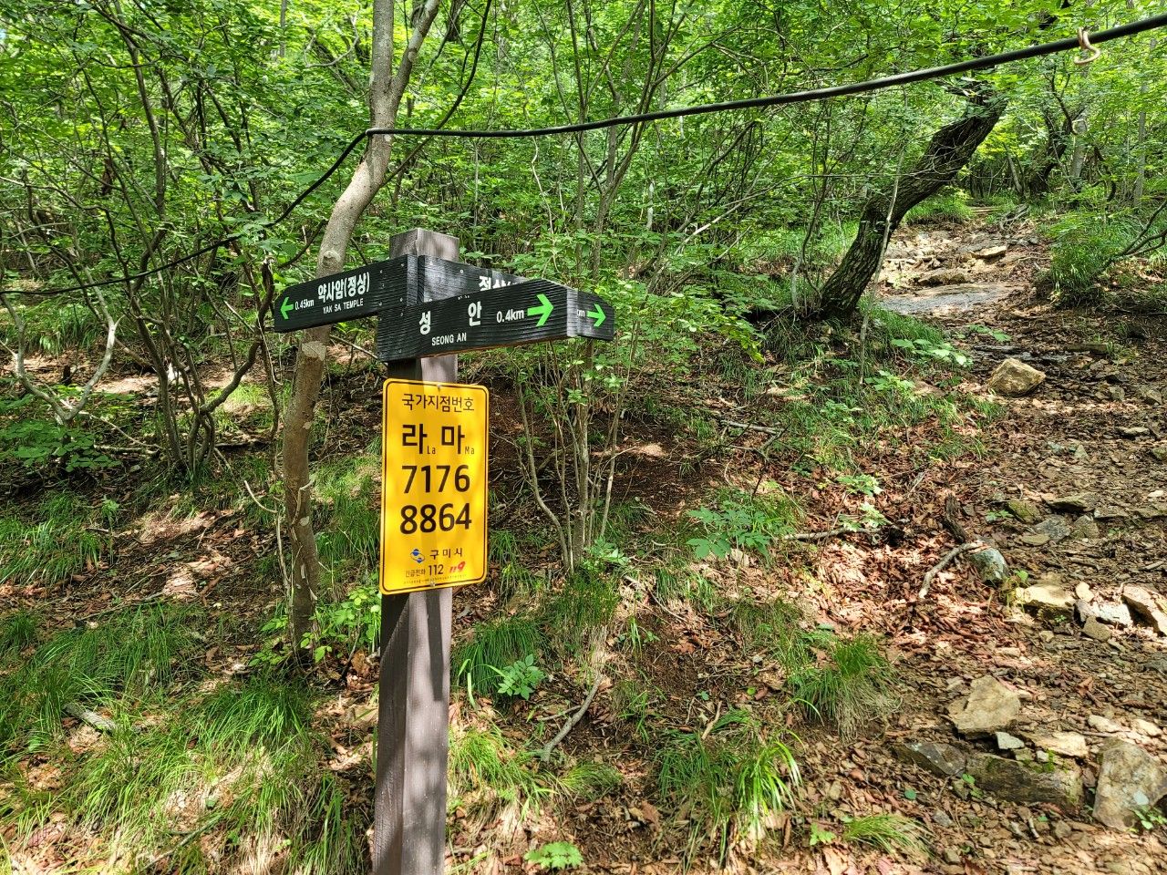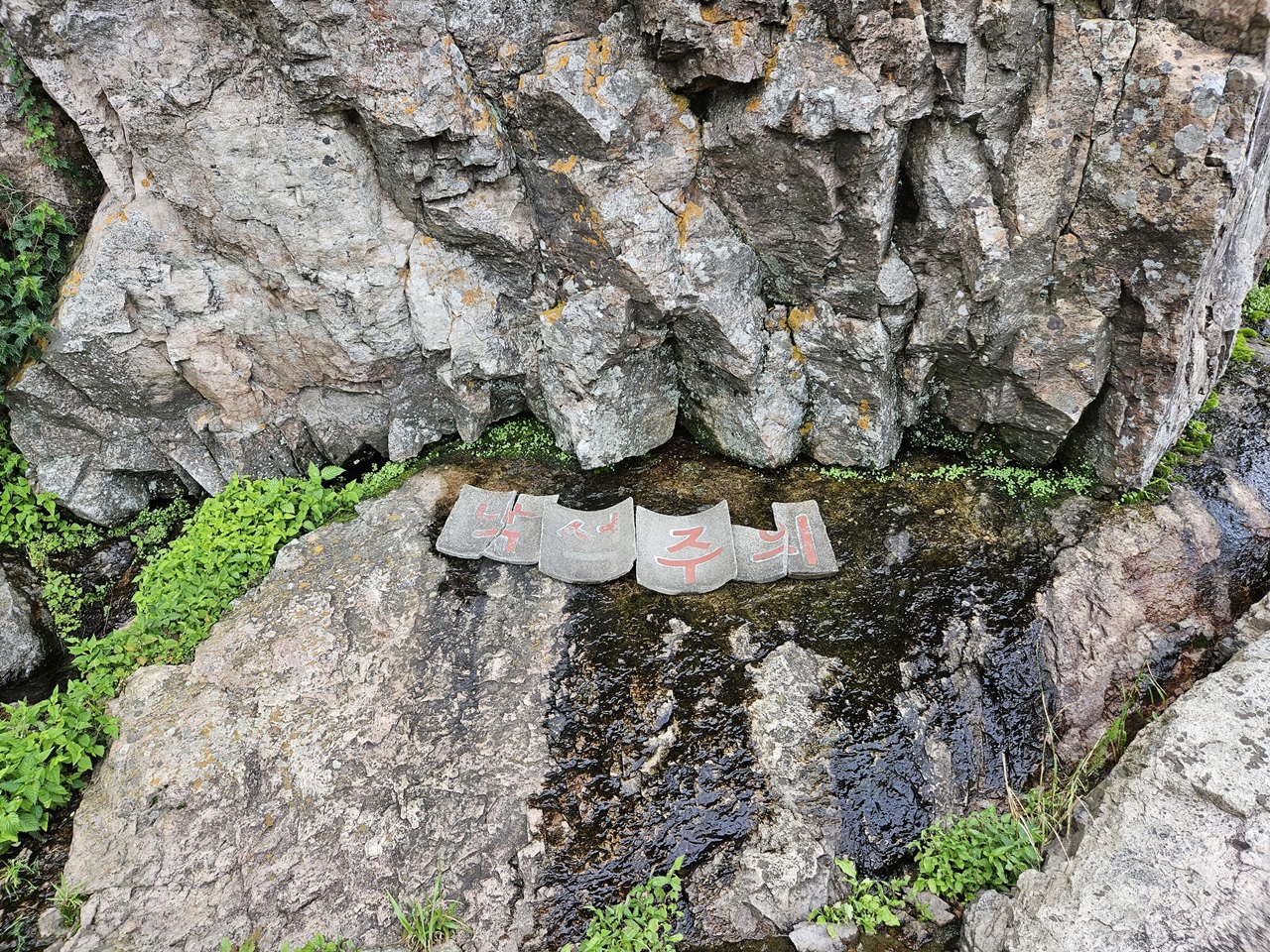 약사암에서 종각으로 가는 길에 있는 바위의 틈이 많이 벌어져 보였는데요. 사진으로 보이는 것보다 훨씬 틈이 넓었네요. 낙석주의라는 문구도 있고 비가 많이 내리니 더 걱정이 되었는데요. 금오산 오르시는 분들 주의하시기 바랍니다.