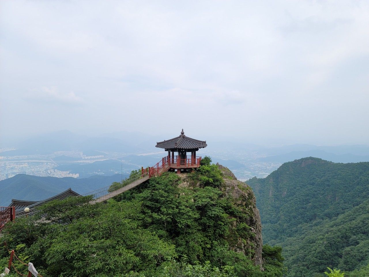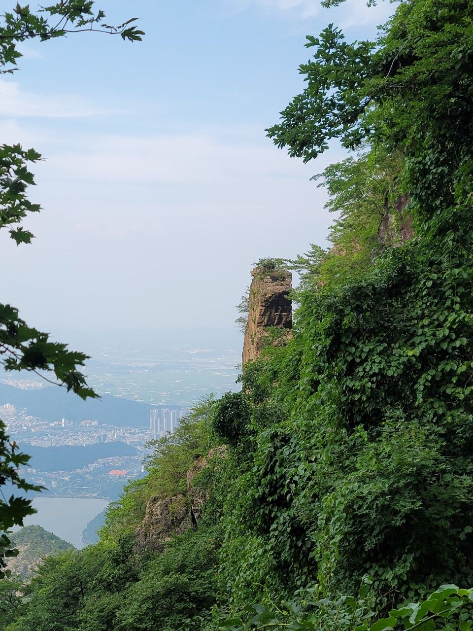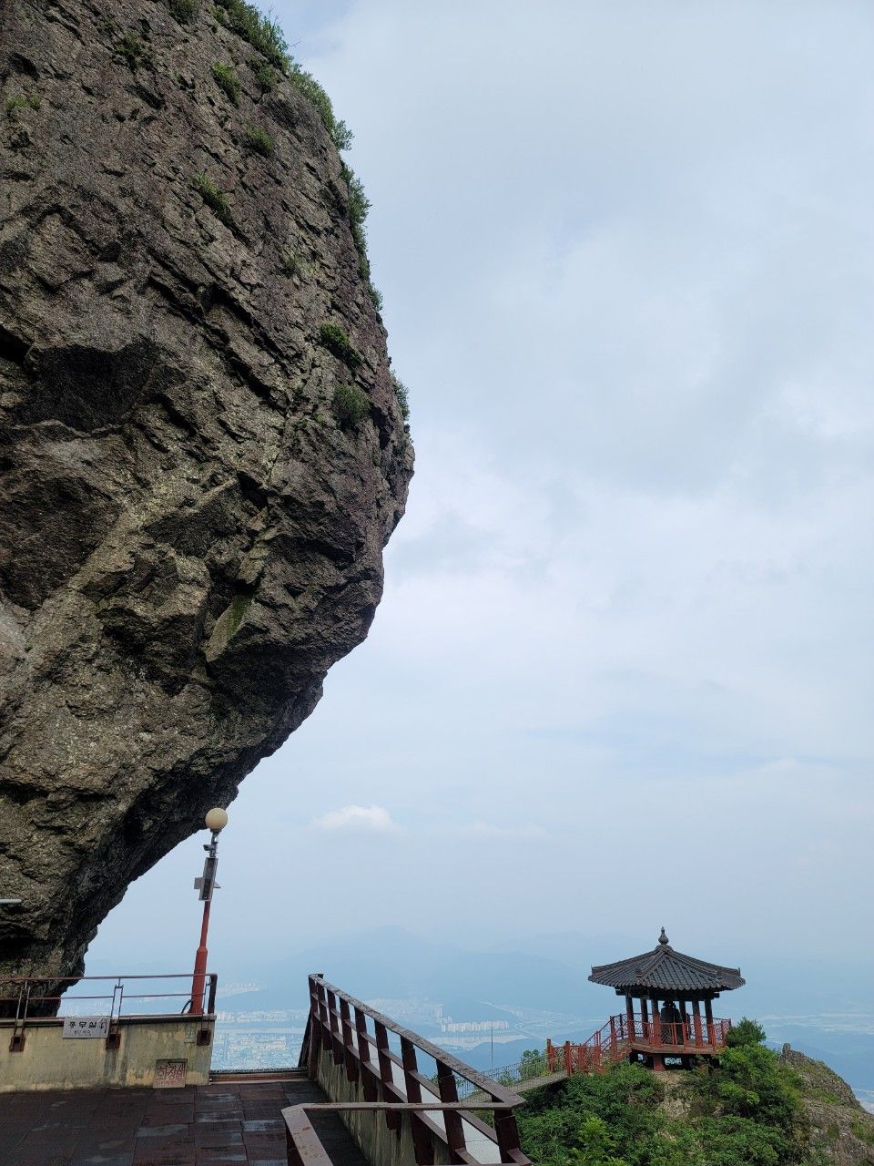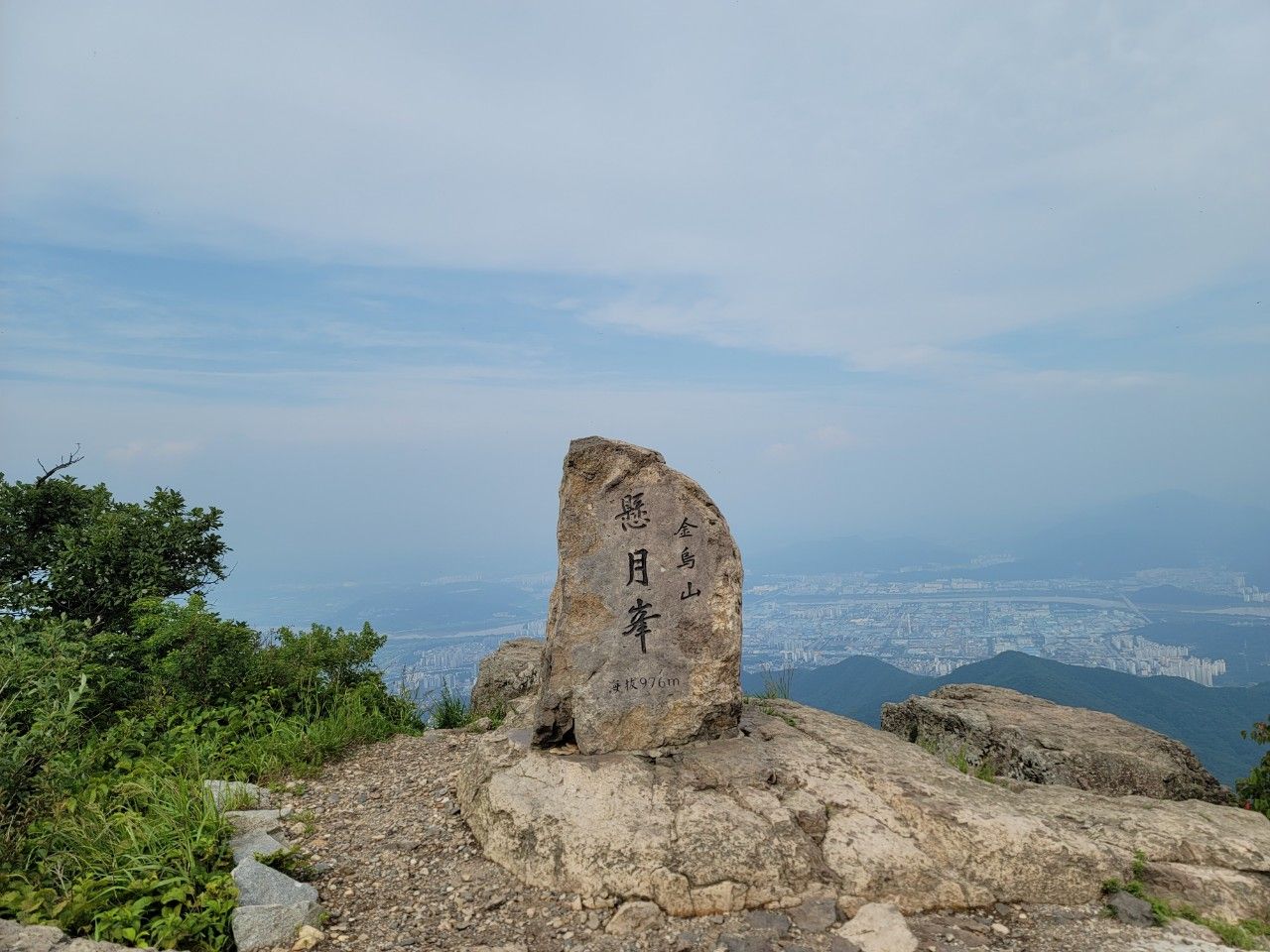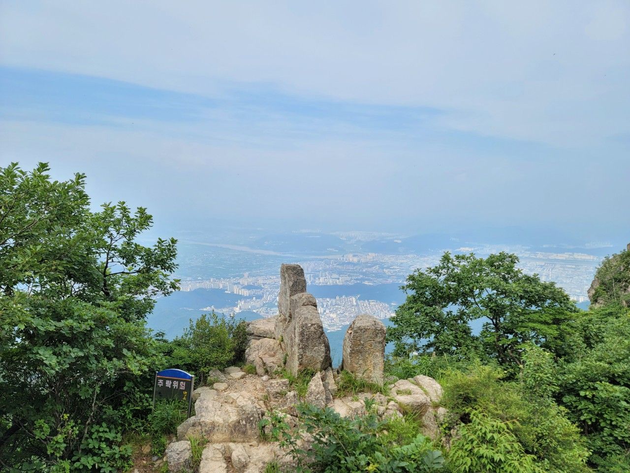 금오산 정상에 도착했습니다. 구미 시내가 훤히 보이는 정상인데요. 운무가 살짝 있어서 아쉬웠습니다.