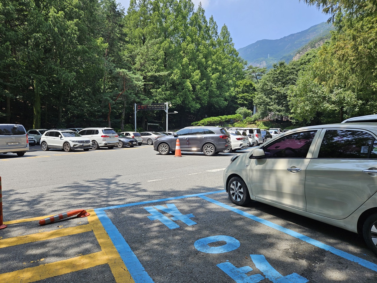 금오산 제1공영주차장에 주차를 했습니다. 조금 늦은 시간이었는데도 날이 더워서인지 주차 공간이 남아있었답니다.