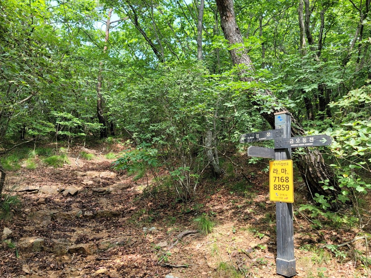정상까지 0.4km, 여기서 금오동천으로 빠지는 길도 있습니다.