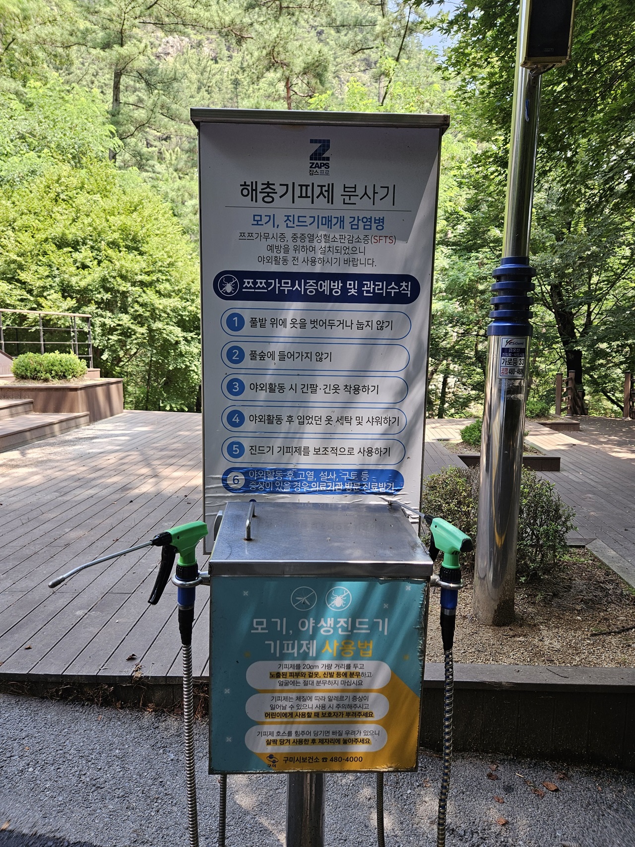 일단 모기도 야생진드기도 무서우니 기피제 몸 전체로 뿌려주었습니다. 살짝 농약 냄새가 나는 것 같지만 안전한 산행을 위해서 치이익~~