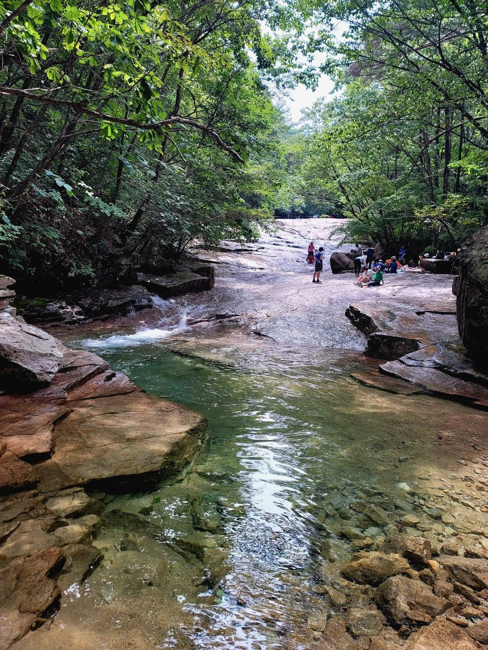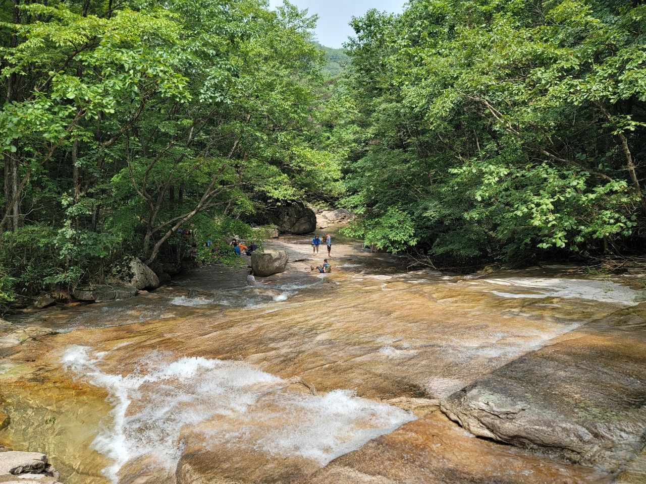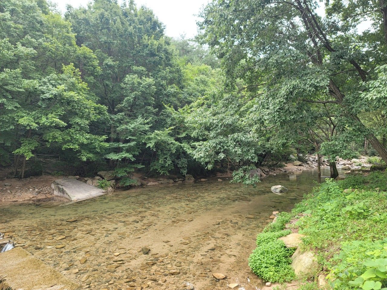 물이 정말 맑고 깨끗한 계곡 따라 계속 진행했습니다.