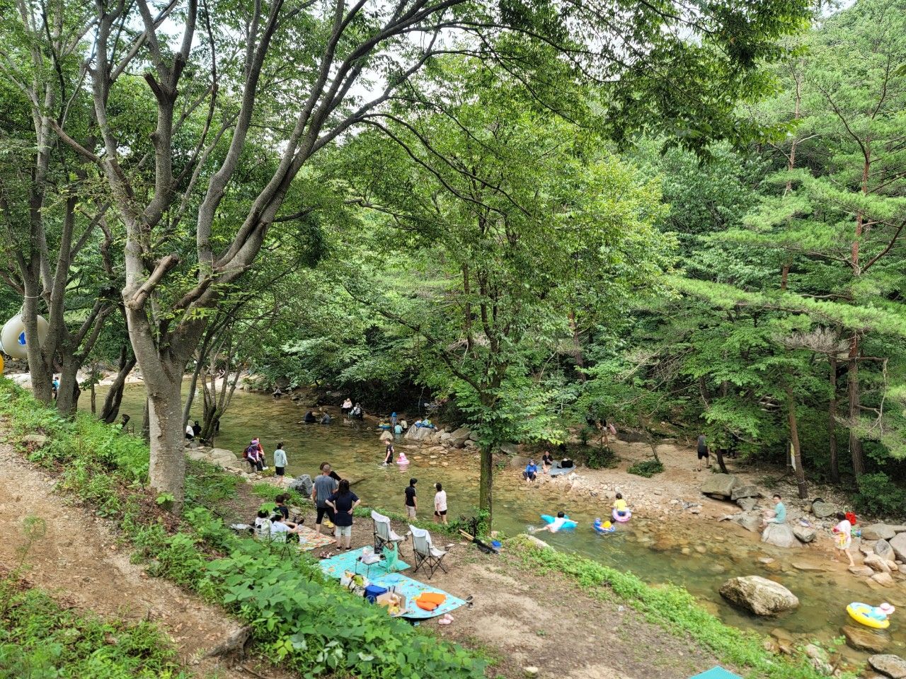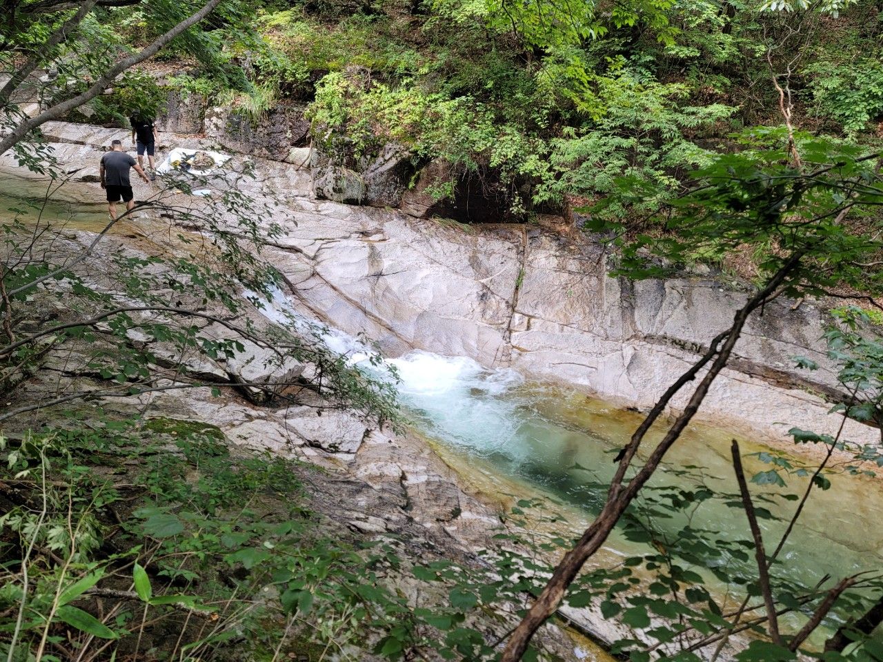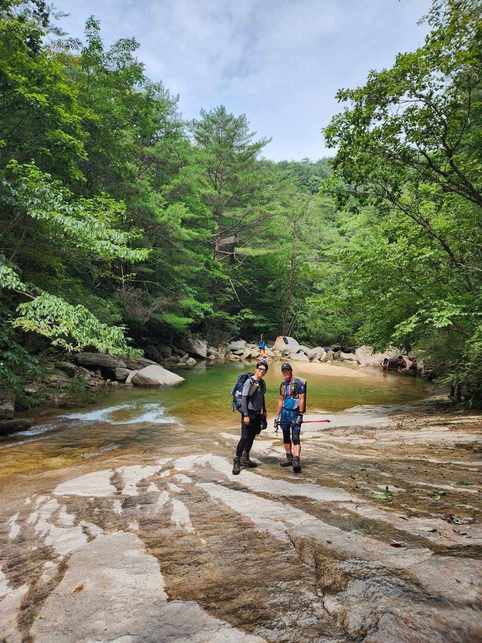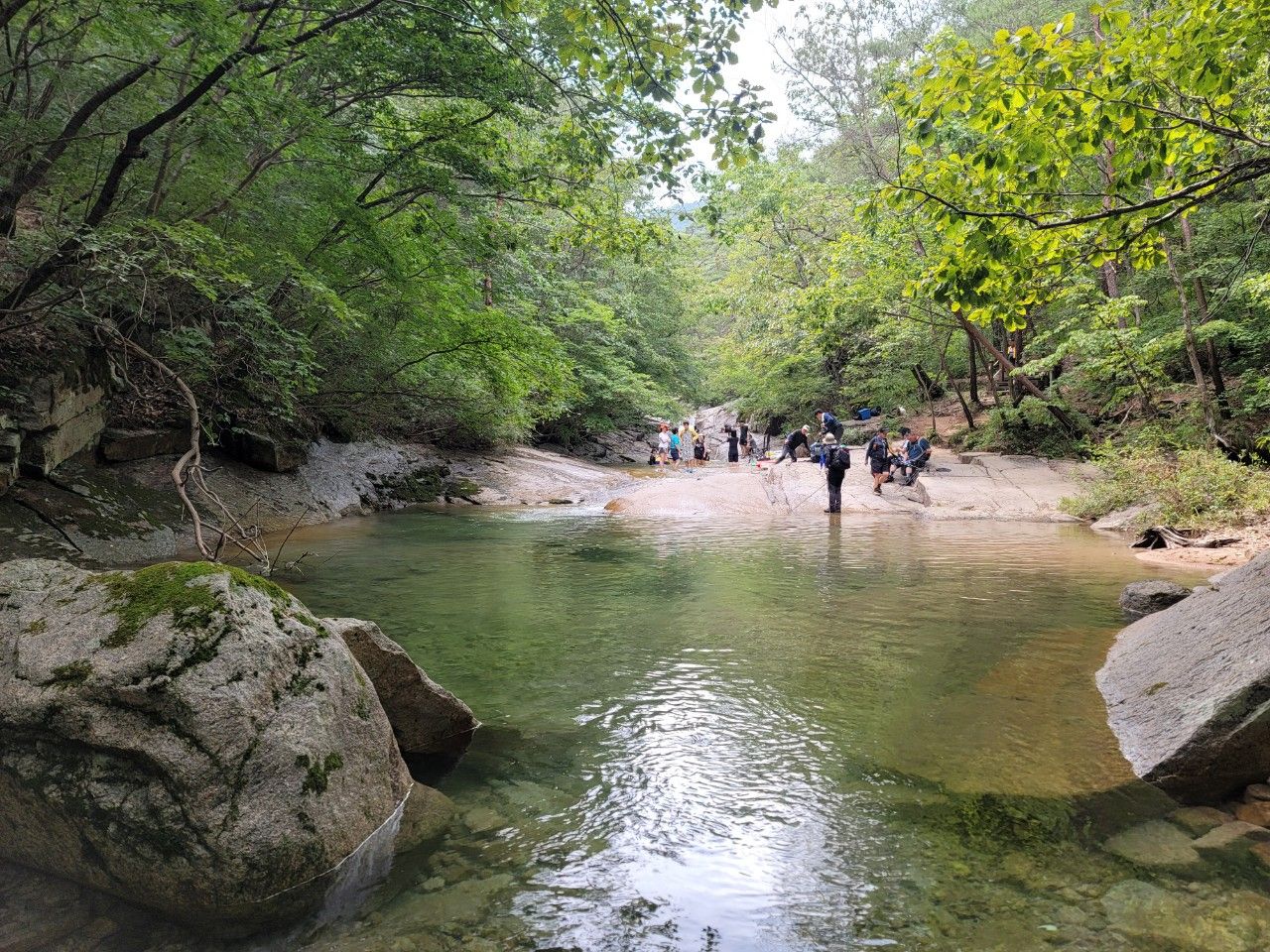 물이 정말 맑고 깨끗한 계곡 따라 계속 진행했습니다.
