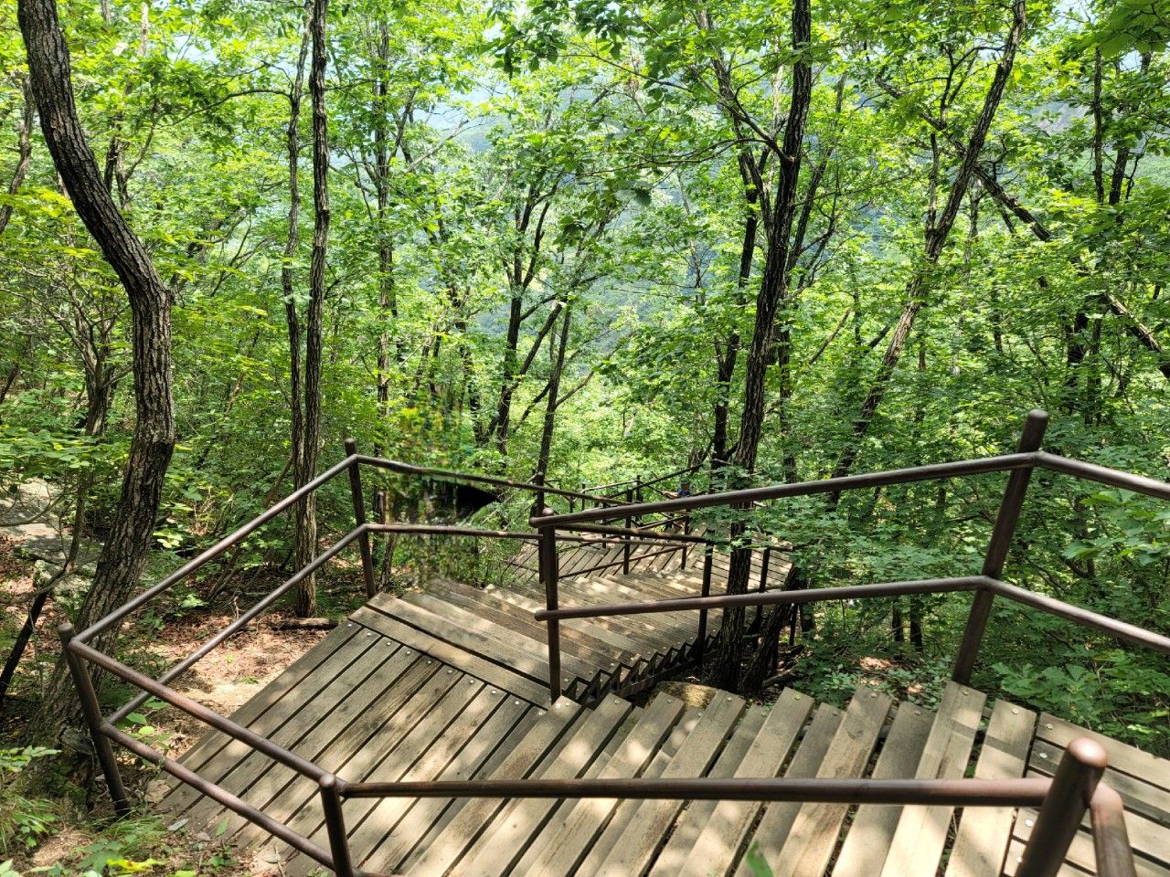 정상에서 3~400m는 계단 데크길이라 오를 땐 땀이 뻘뻘 났답니다.