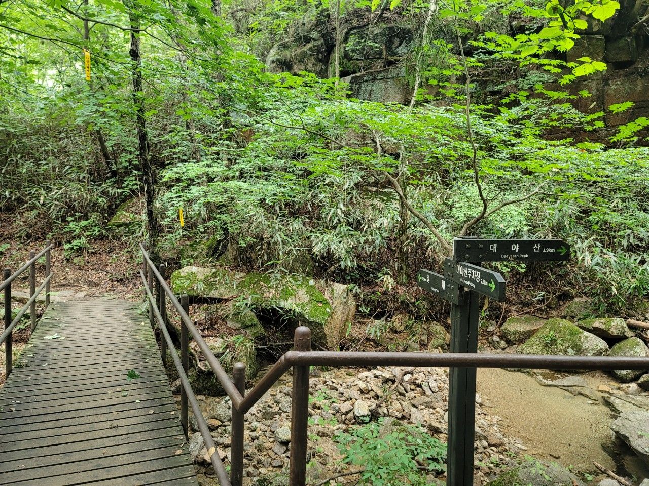 계곡에서 식힌 온도 다시 상승했답니다. 대야산은 특히 맑은 물이 흐르는 계곡이 유명한 곳이라 시원한 물놀이까지 덤으로 즐길 수 있는 여름 산행지로 추천합니다.
