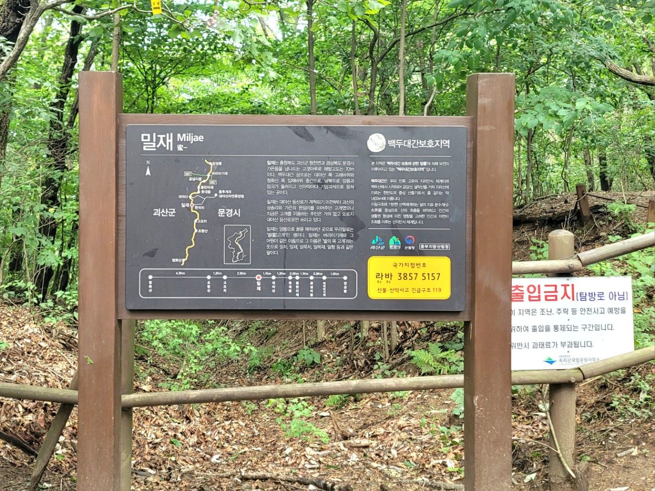 대야산 주차장 무료주차 후 들머리입니다.