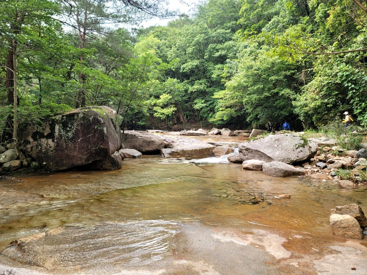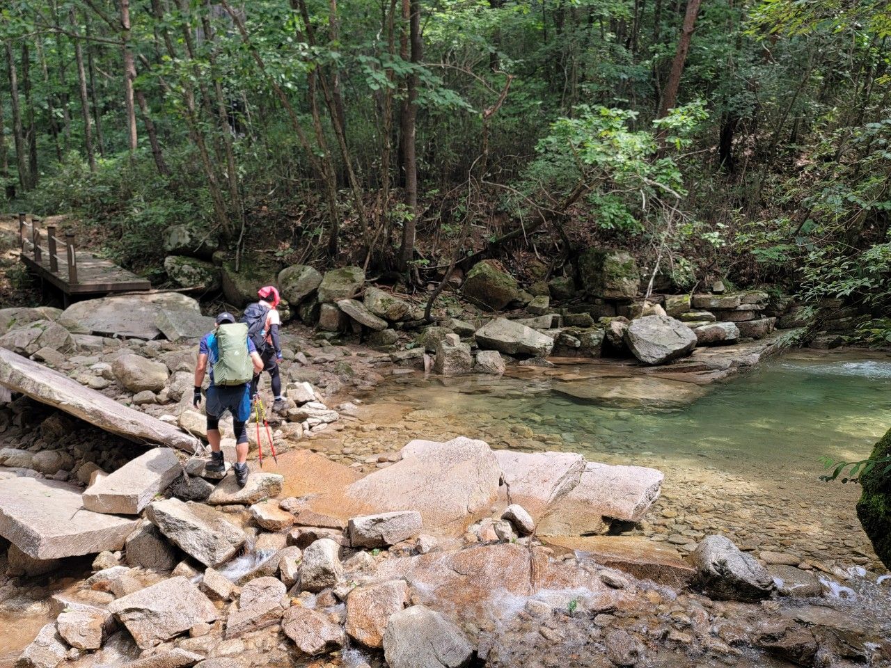 물이 정말 맑고 깨끗한 계곡 따라 계속 진행했습니다.