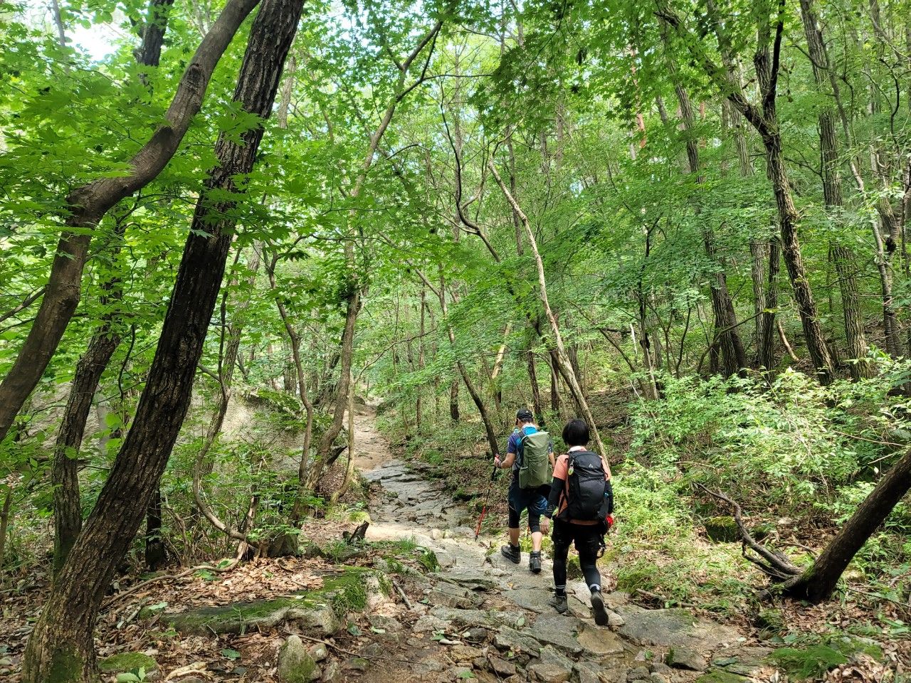 계곡에서 식힌 온도 다시 상승했답니다. 대야산은 특히 맑은 물이 흐르는 계곡이 유명한 곳이라 시원한 물놀이까지 덤으로 즐길 수 있는 여름 산행지로 추천합니다.