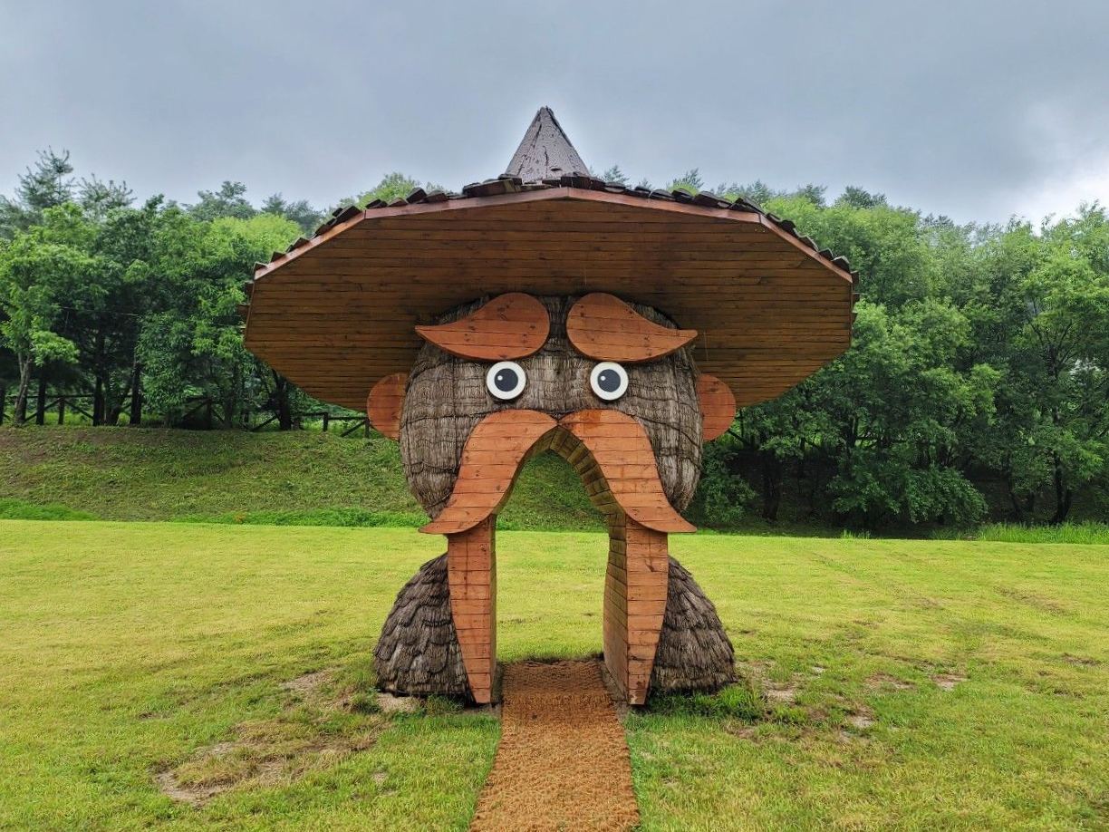 나무로 만들어진 입구가 아주 좋았고 뒤로 보이는 할아버지도 궁금했답니다.