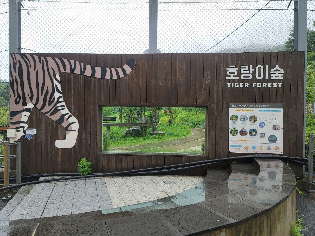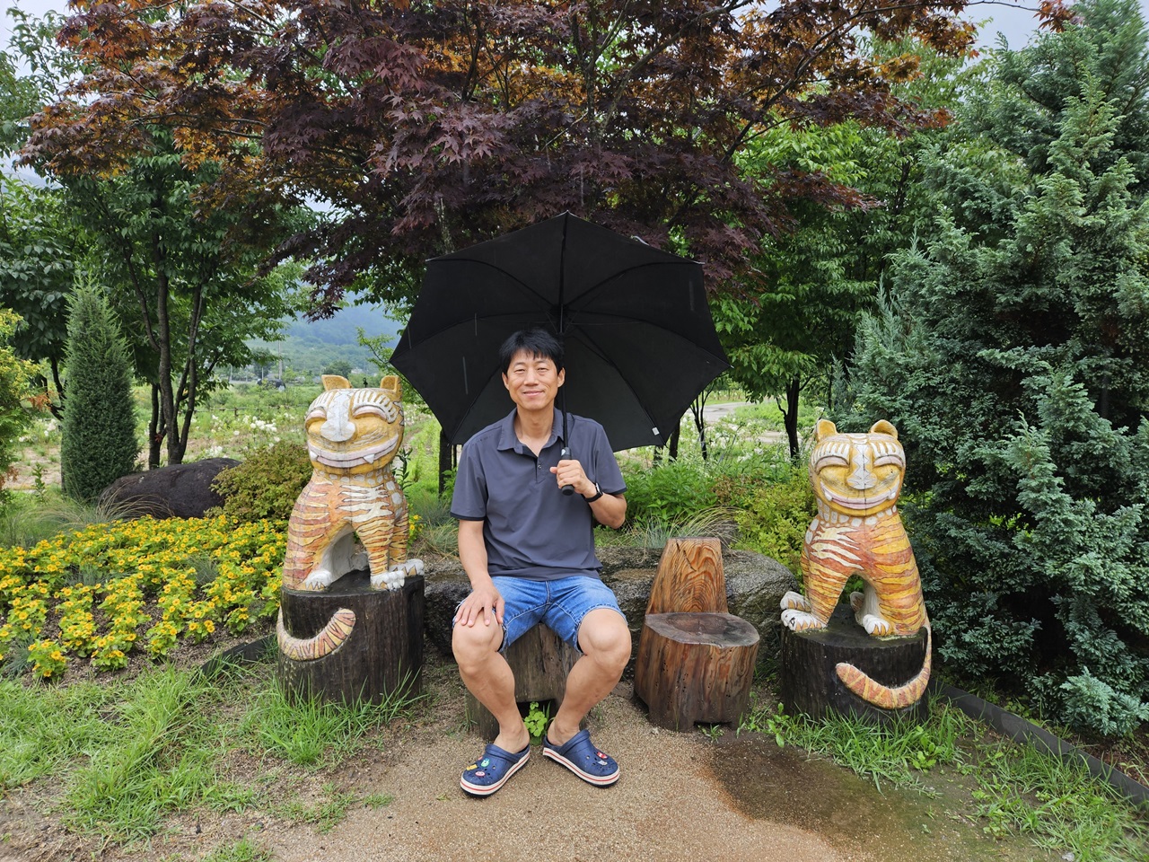 호랑이숲으로 가는 길에 앉았다 가라는 비율 좋은 호랑이도 만났습니다. 빗물만 아니면 앉았다 갈 텐데 말이죠~~^^