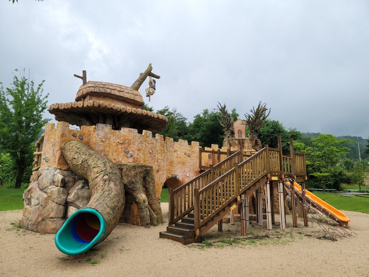 맞은편에는 놀이터가 있어서 어린이 친구들이 아주 좋아할 것 같습니다. 모래가 있어 모래놀이 놀잇감도 챙겨가면 더 좋겠죠?