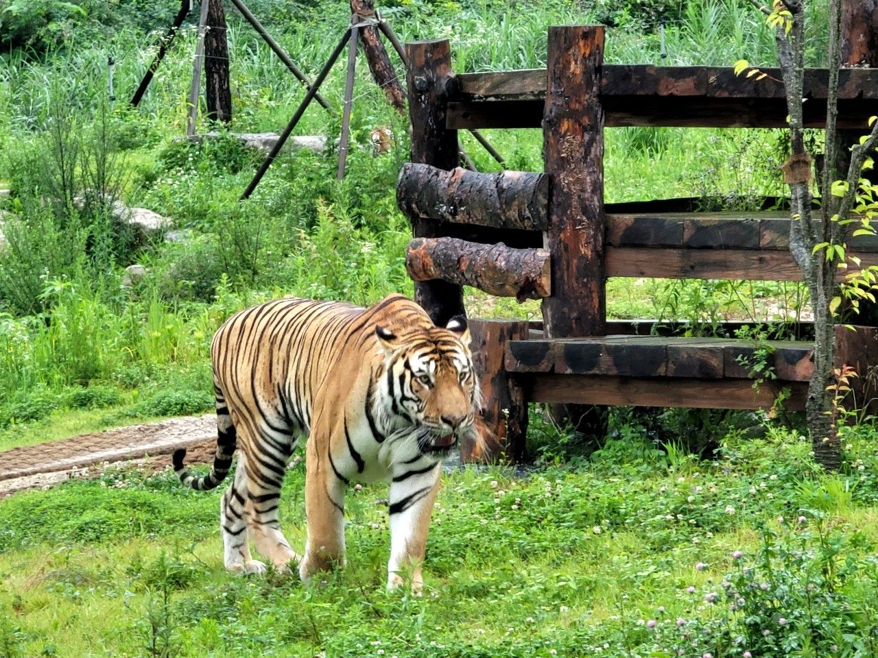호랑이숲 도착했는데요~ 호랑이들이 마중 나와 있더라구요~