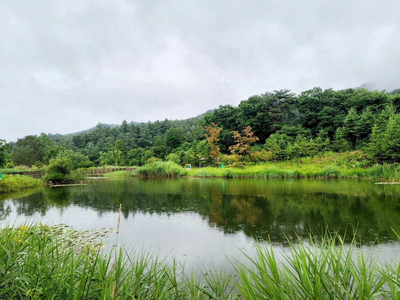 고산습원 도착했습니다. 아래로 내려가보니 작은 호수에 산책길이 있었습니다.