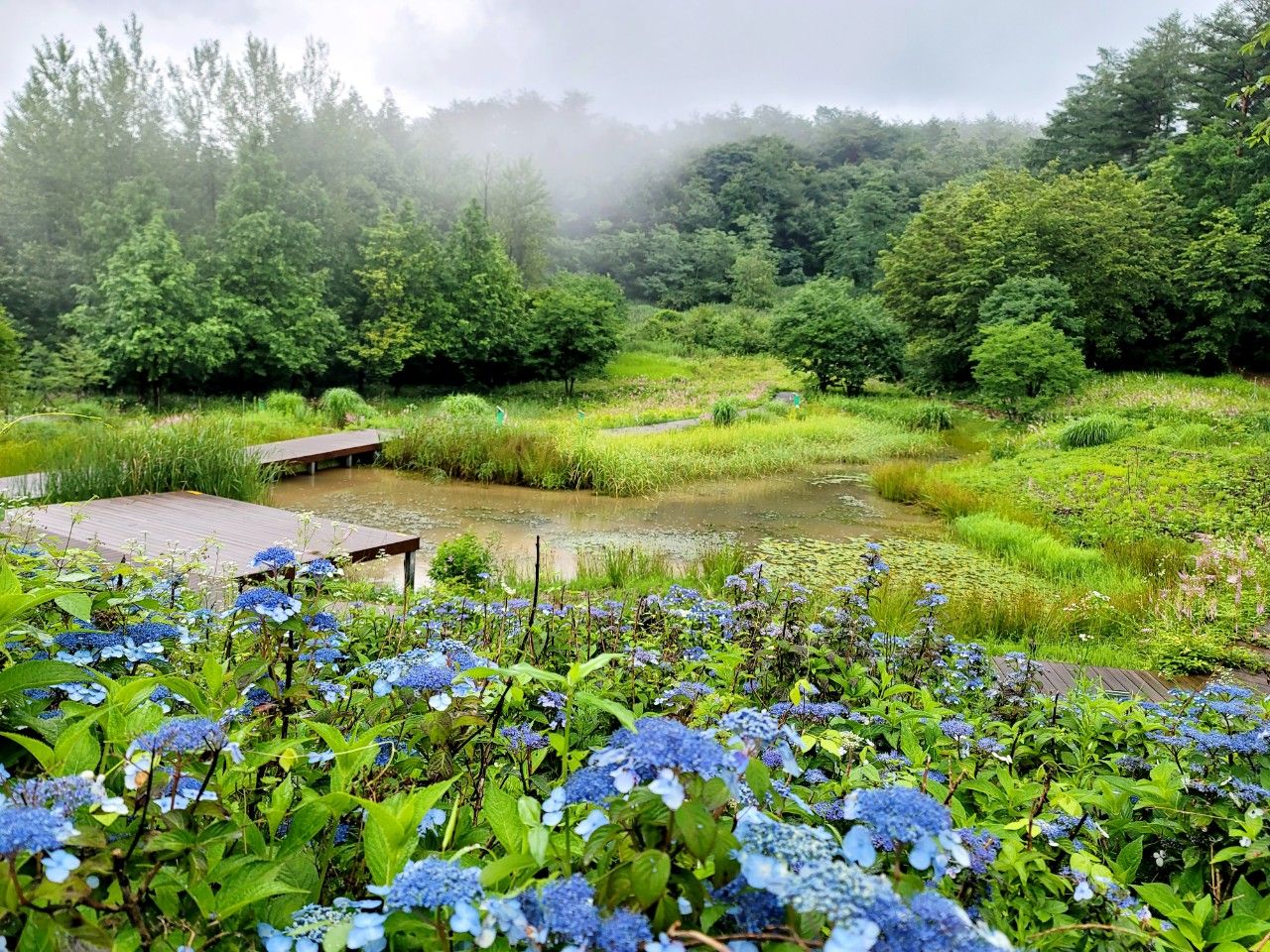 산수국 밭이네요~~ 파란색인 듯 보라색 같은 이쁜 꽃입니다.
