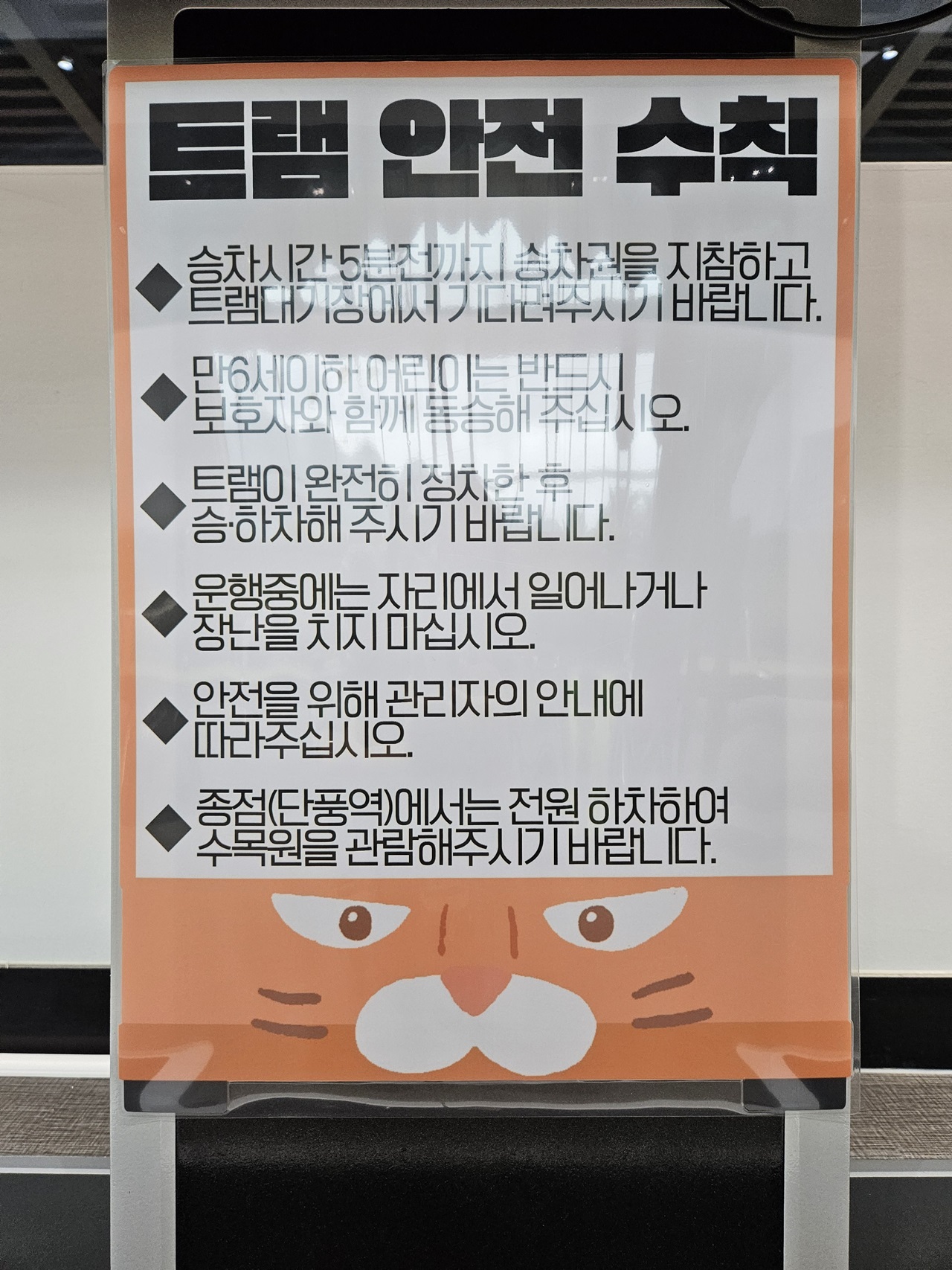 트램 타기 전 미리 화장실 다녀와서 트램 안전 수칙 꼼꼼히 읽어 보았습니다. 무엇보다 안전이 최우선이니까요~