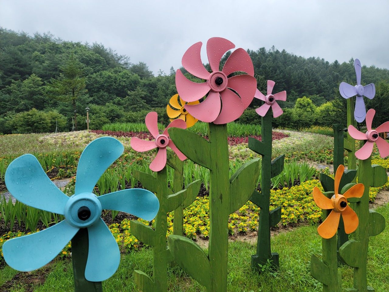 알록달록 선풍기 날개로 만들어 놓은 바람개비도 있었구요~
